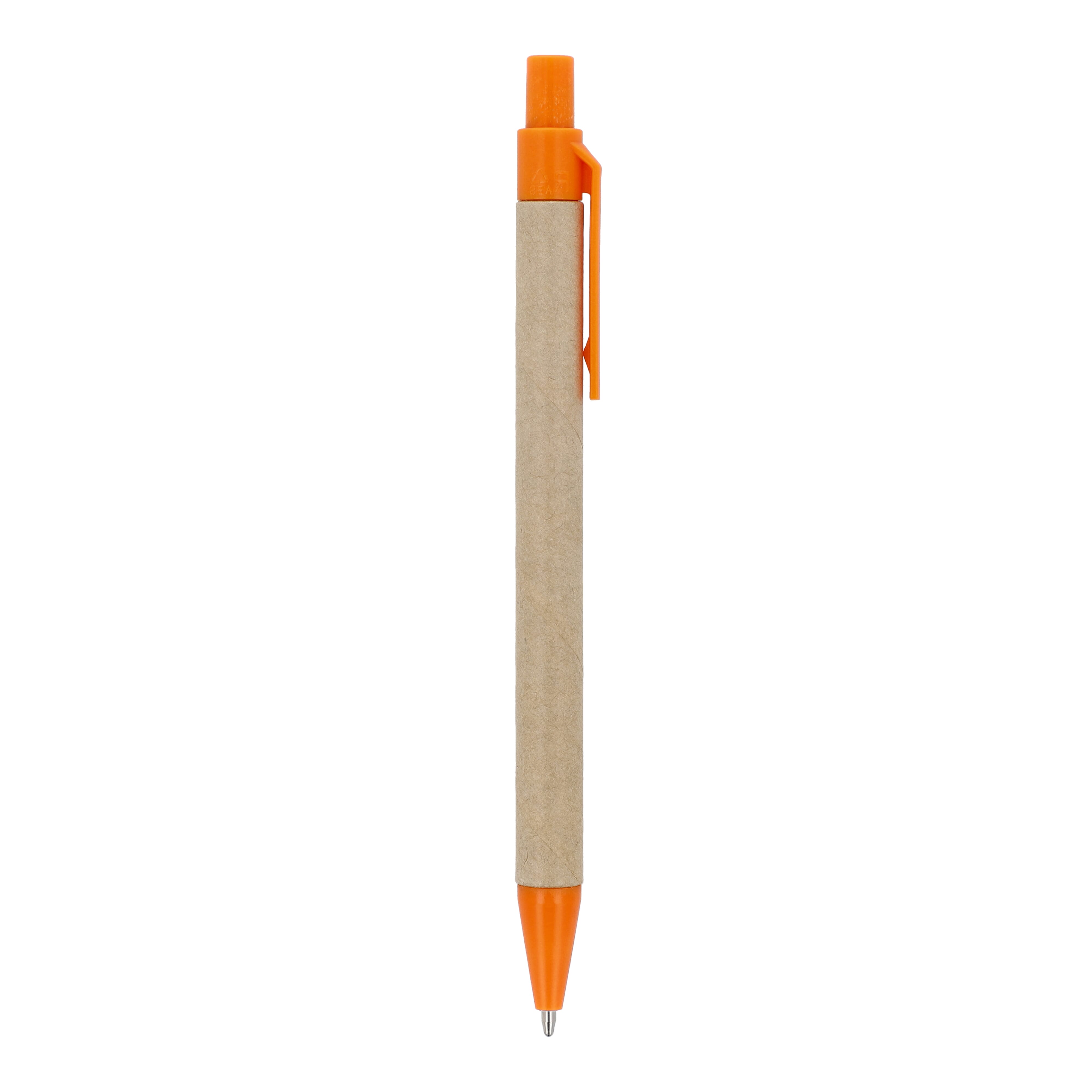 Papierkugelschreiber mit farbigen Kunststoffteilen aus recyceltem Material. Mit blauer Schreibmine.