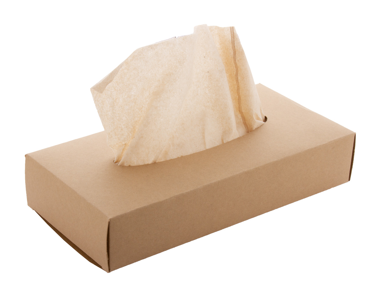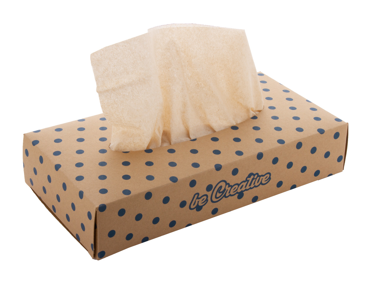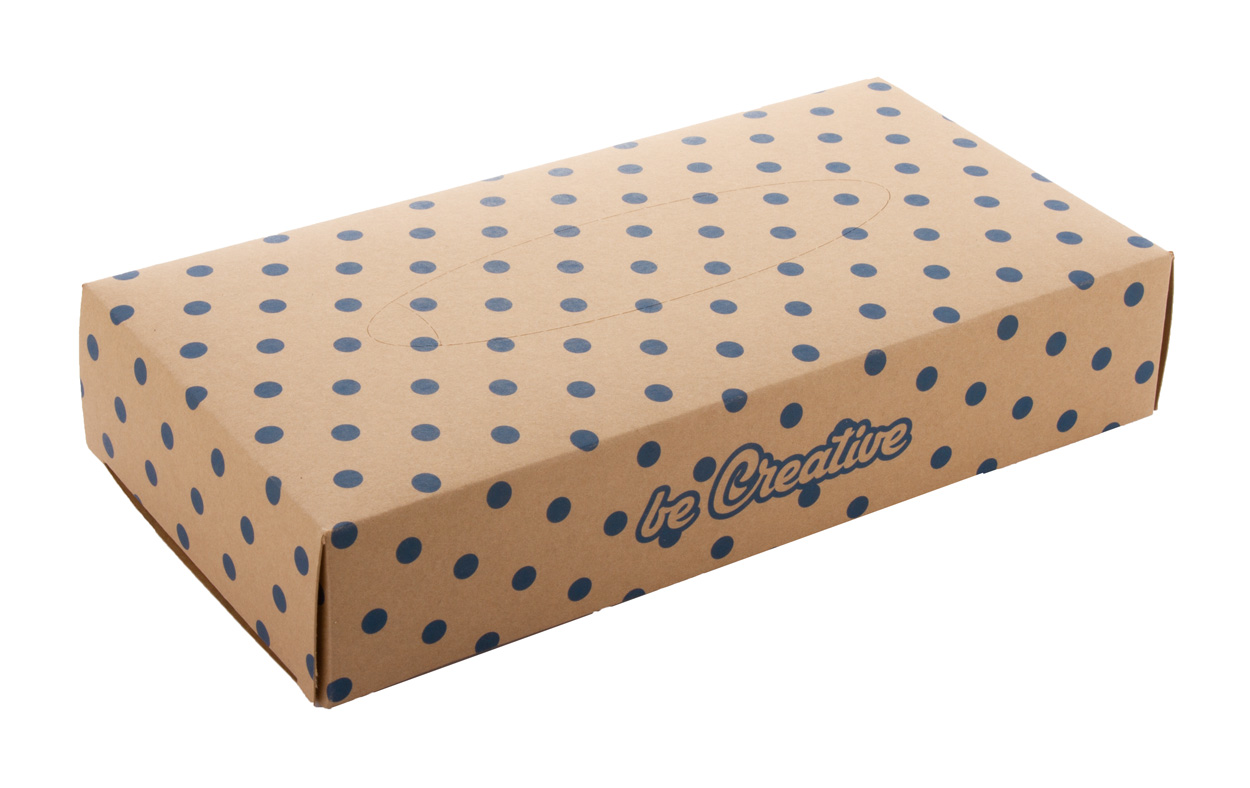 100 Papiertaschentücher, 2-lagig, in individueller Spenderbox aus Kraftpapier. Der Preis ist inkl. vollflächigem Digitaldruck. Mindestmenge: 100 Stk.