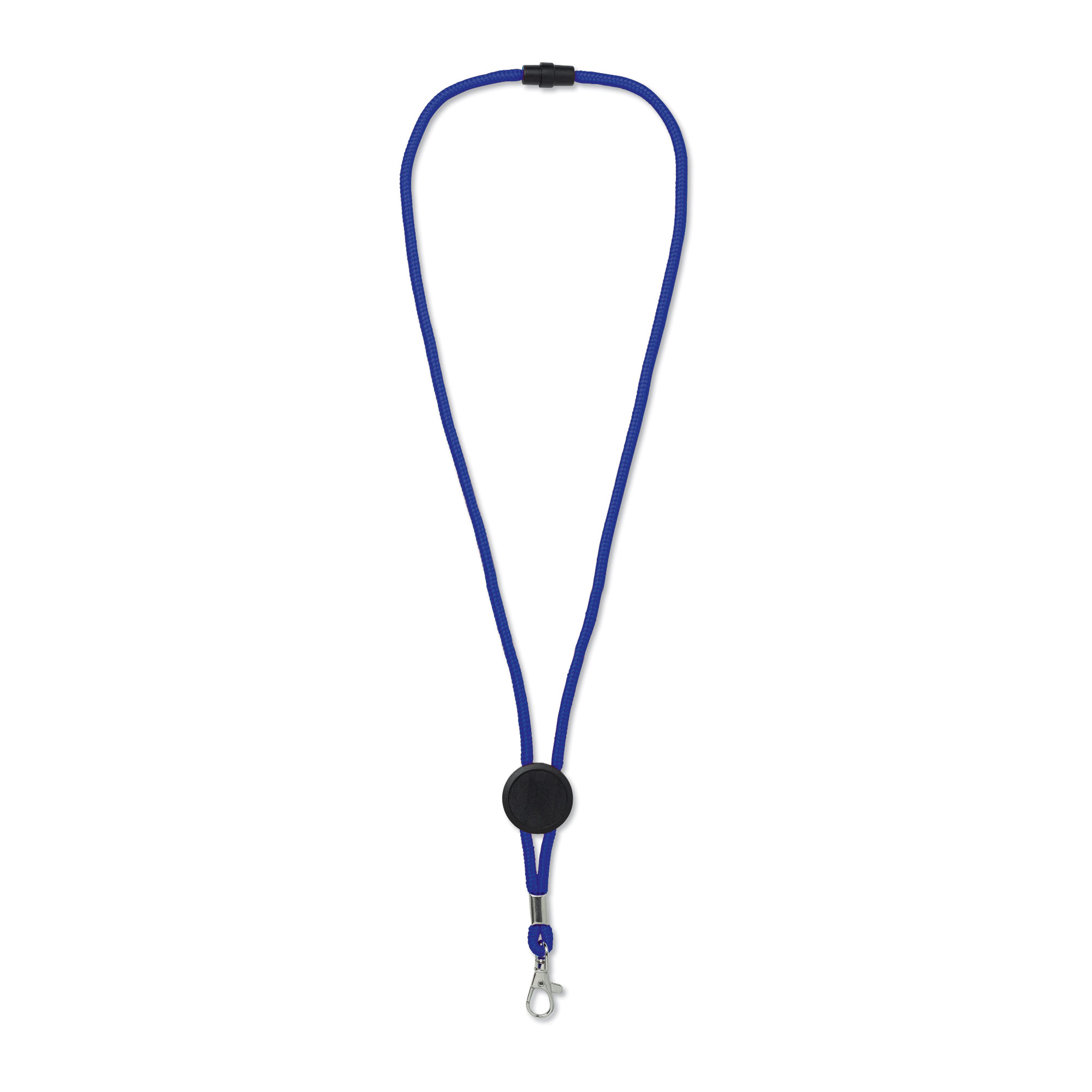 Lanyard aus Paracord mit Kunststoff Sicherheitsverschluss und Metallhaken. Das Lanyard ist verstellbar durch ein Kunststoff Plättchen, das mittels Doming veredelt werden kann.