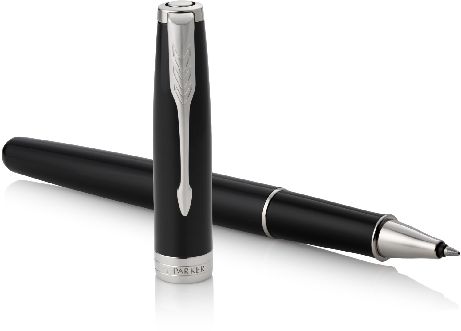 Parker Rollerball Sonnet Schaft und Kappe aus Edelstahl, akzentuiert durch Clip und Zierleiste in Chromoptik. Tintenfarbe: schwarz. Verpackt in einer Geschenkbox.