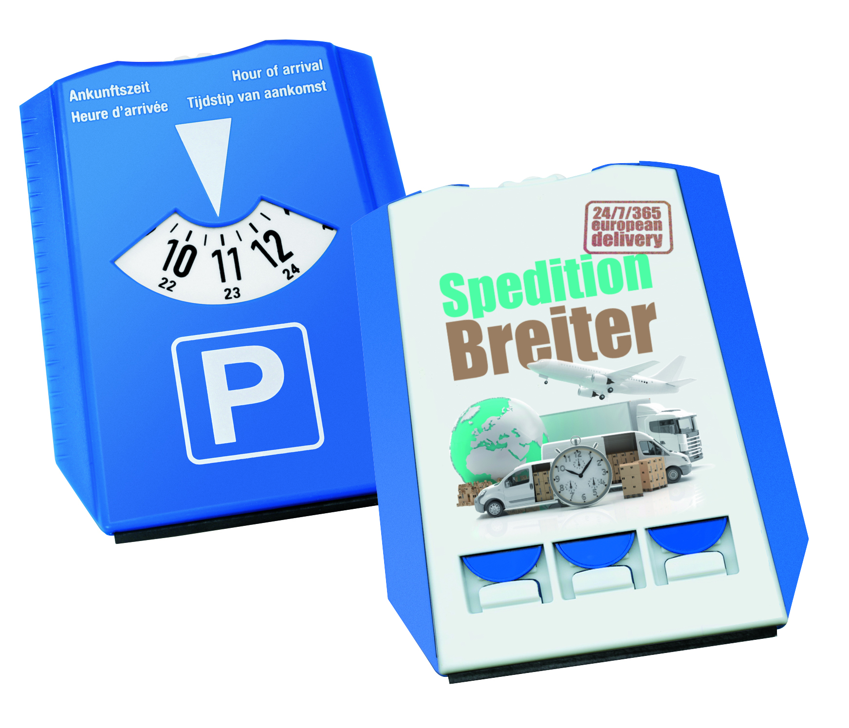 Parkscheibe "Gamma" aus besonders temperaturbeständigem ABS, mit 24 Std.-Anzeige und Eiskratzer und Wasserabstreifer, entspricht § 42 StVO, ohne Chips