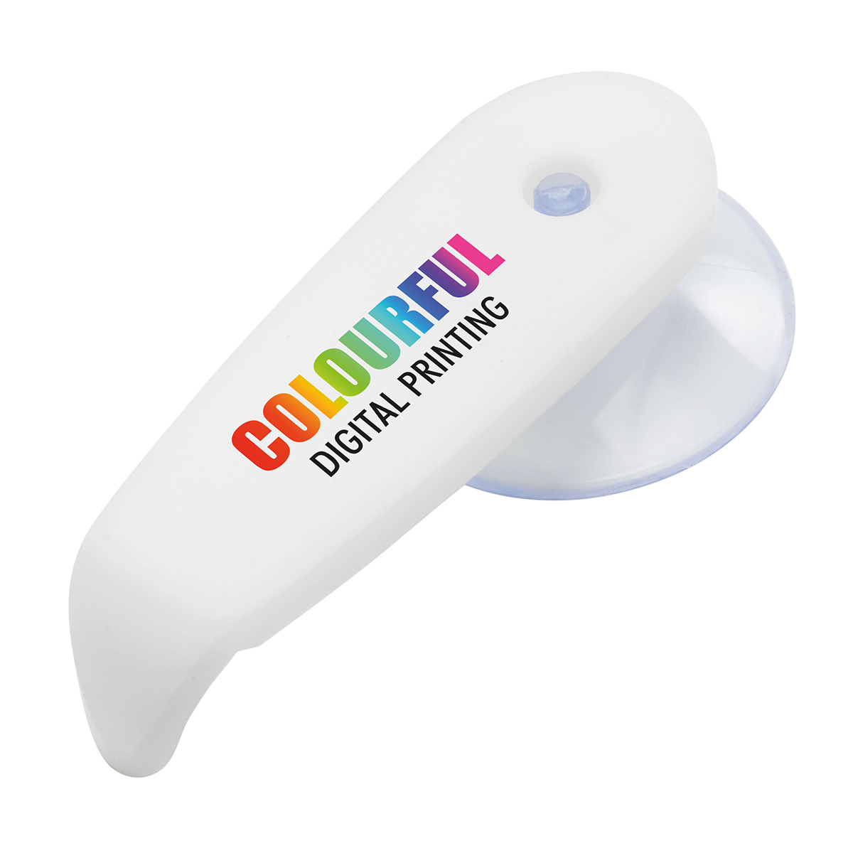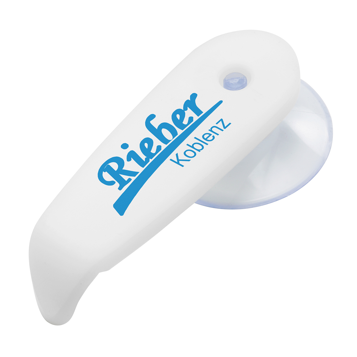 Parkscheinhalter mit Saugnapf, Befestigung an der Windschutzscheibe. Der Parkschein wird unter den Halter geklemmt.
