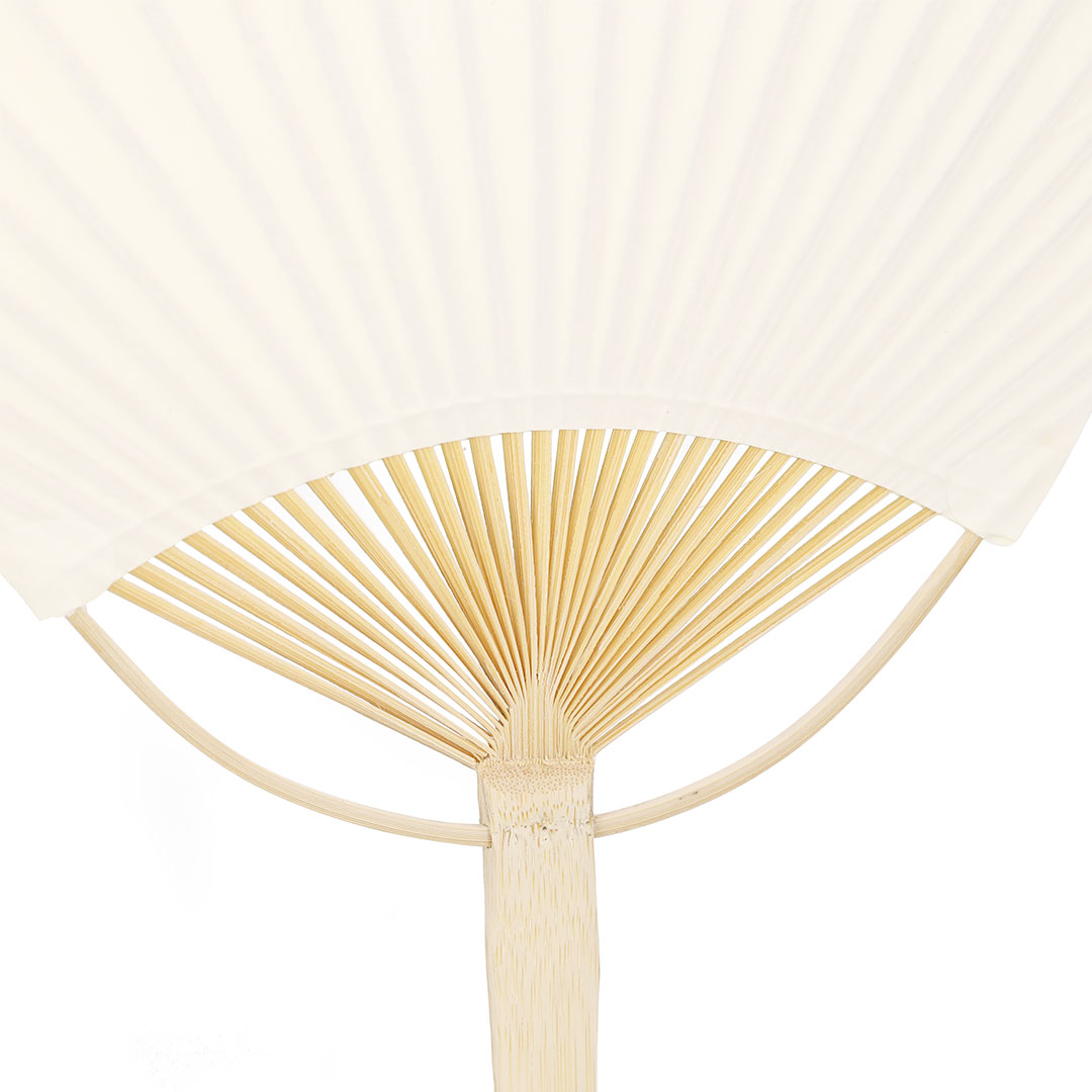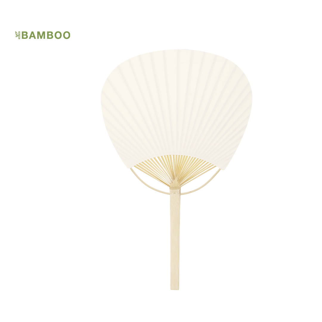 Fächer aus Bambus mit Papier. Materialien wie Bambus fördern die Nutzung von Naturressourcen und reduzieren die Emissionen von Schadstoffen. Darüber hinaus stammt Bambus von einer sehr widerstandsfähigen Pflanze mit schneller Wachstum und Regeneration, wodurch es eine hervorragende Alternative zur traditionellen Holzverwendung darstellt.