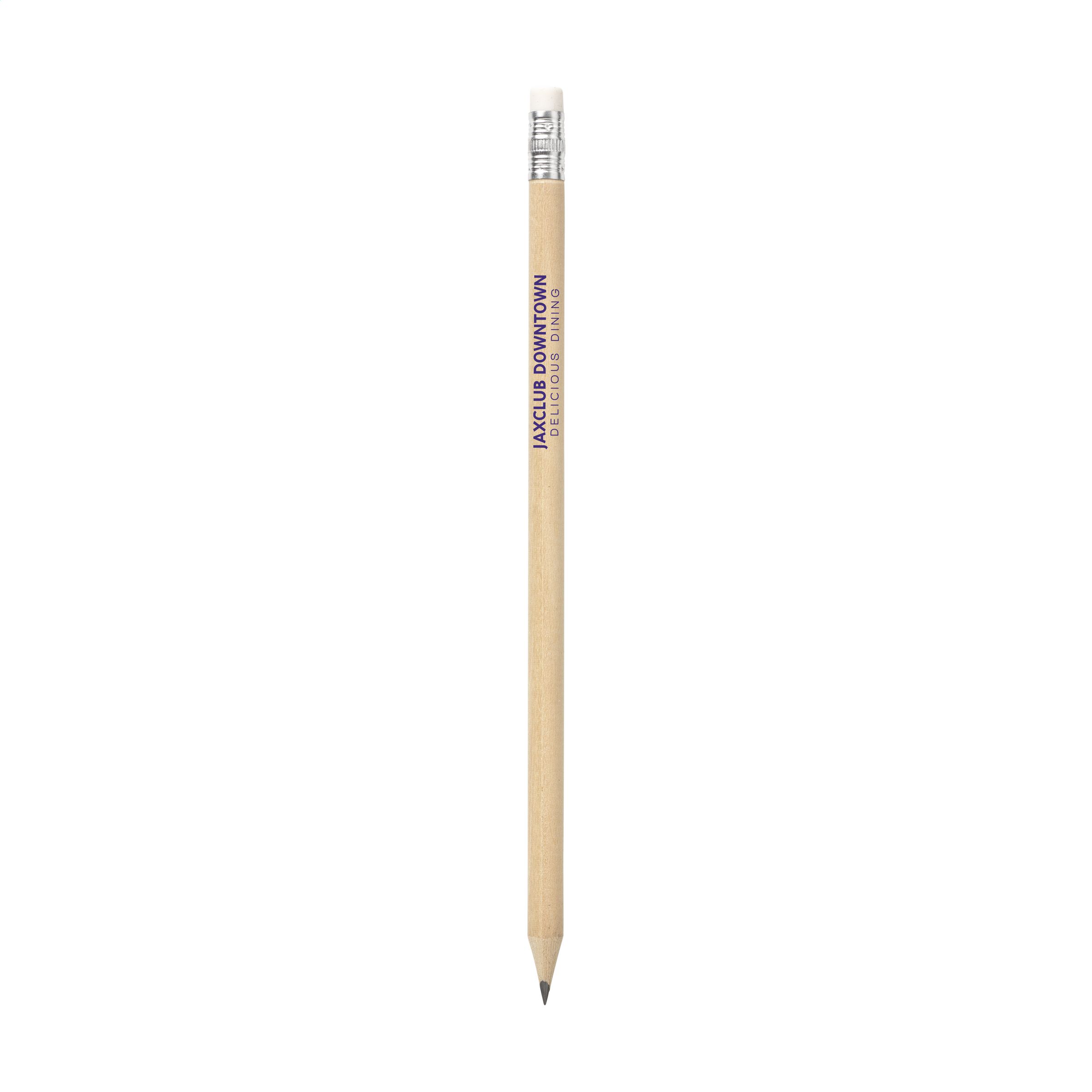 Angespitzer Holzbleistift (HB) mit Radiergummi.
