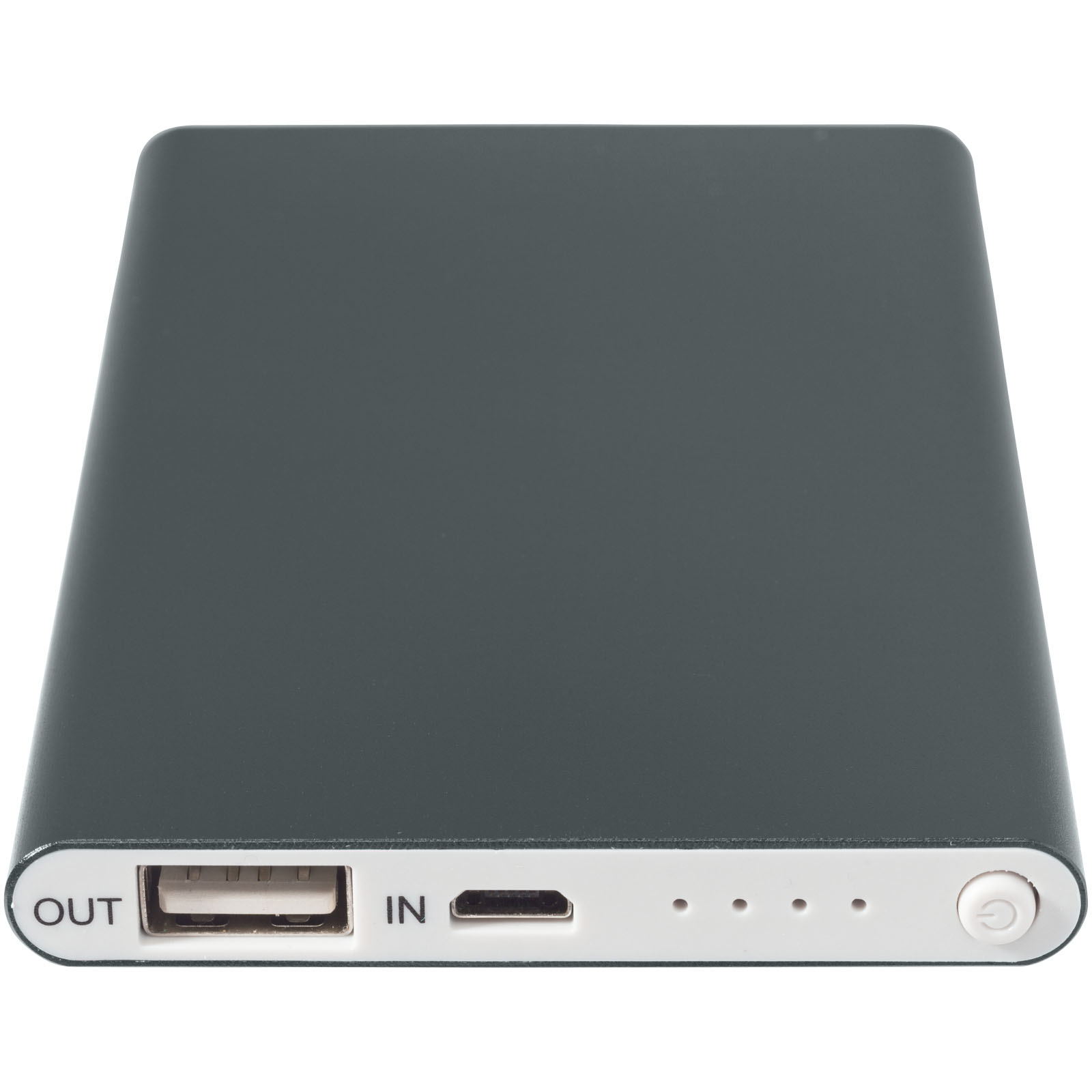 Diese schlanke und leichte Aluminium-Powerbank enthält einen Lithium-Polymer-Akku der Klasse A und hat eine Kapazität von 4000 mAh. Die LED Anzeigen leuchten während des Aufladens auf und zeigen die restliche Akkukapazität in der Powerbank an. Die Powerbank hat einen 5 V/1 A Eingang und einen 5 V/1 A Ausgang. Im Lieferumfang enthalten ist ein Ladekabel vom Typ-C auf USB-A. Metalleffektlack. Verpackt in einer weißen Geschenkbox.