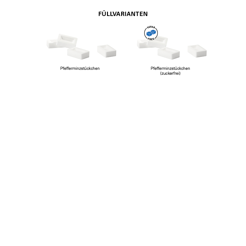 1 Riegel mit 12 Pfefferminzstückchen, zuckerfrei oder 1 Riegel mit 12 Pfefferminzstückchen