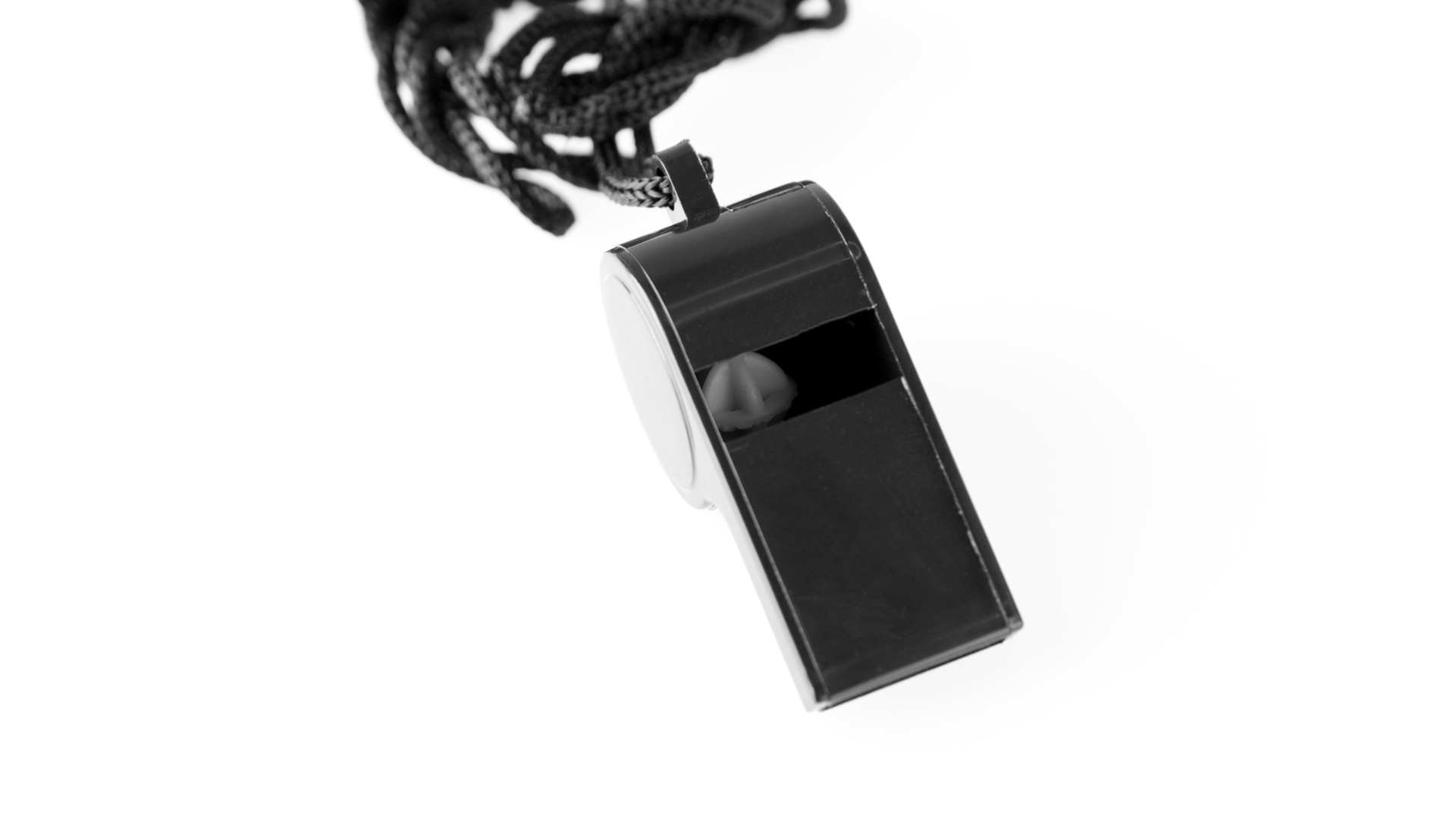 Lustige Trillerpfeife mit klassischem Design in vielen kräftigen Farben mit farblich passendem Band zum Umhängen.