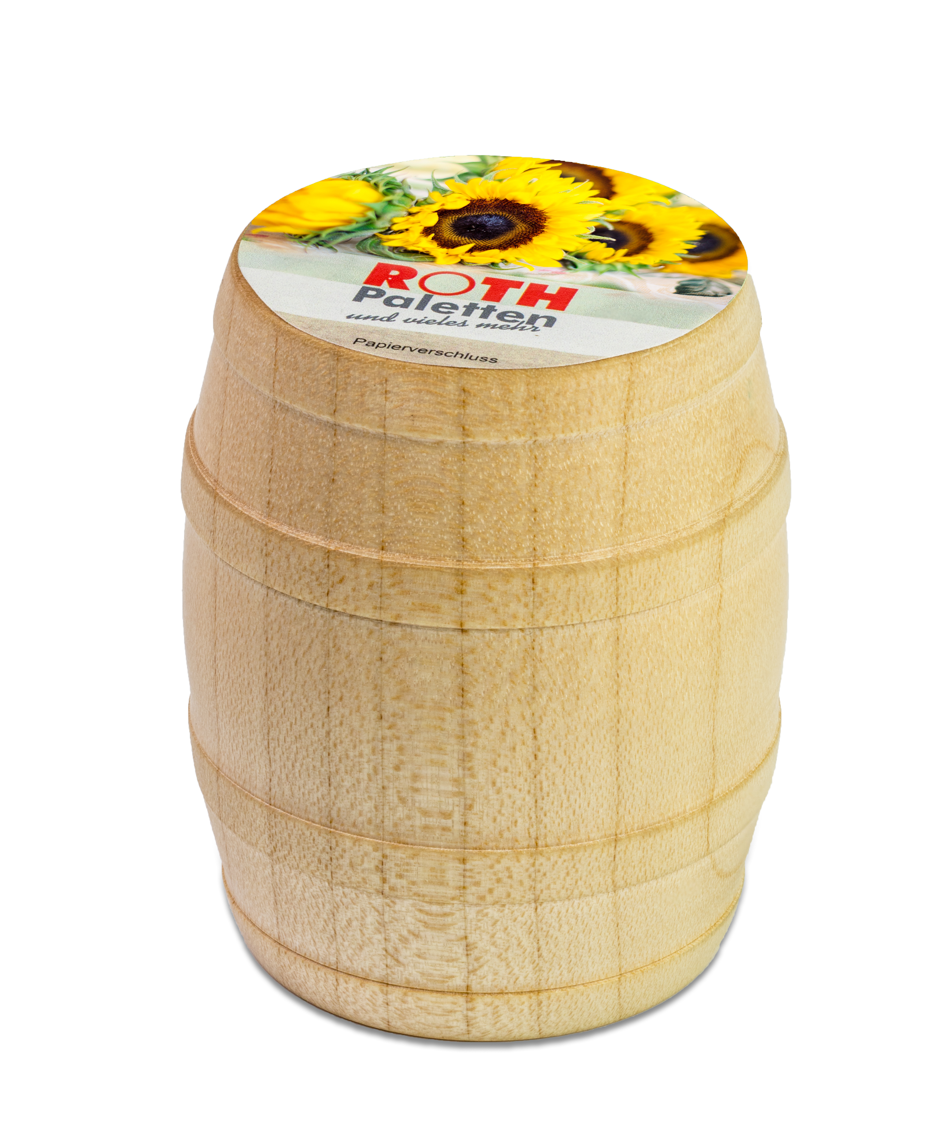 Dieses besondere Fässchen aus europäischem Holz wird gefüllt mit einer Substrattablette als Erde, Samen nach Wahl und Pflanzanleitung geliefert. Mit dem individuell gestalteten Papieraufkleber als Deckel bringen Sie Ihre Werbebotschaft ins Rollen. Optional ist eine Lasergravur auf dem Gefäß möglich.