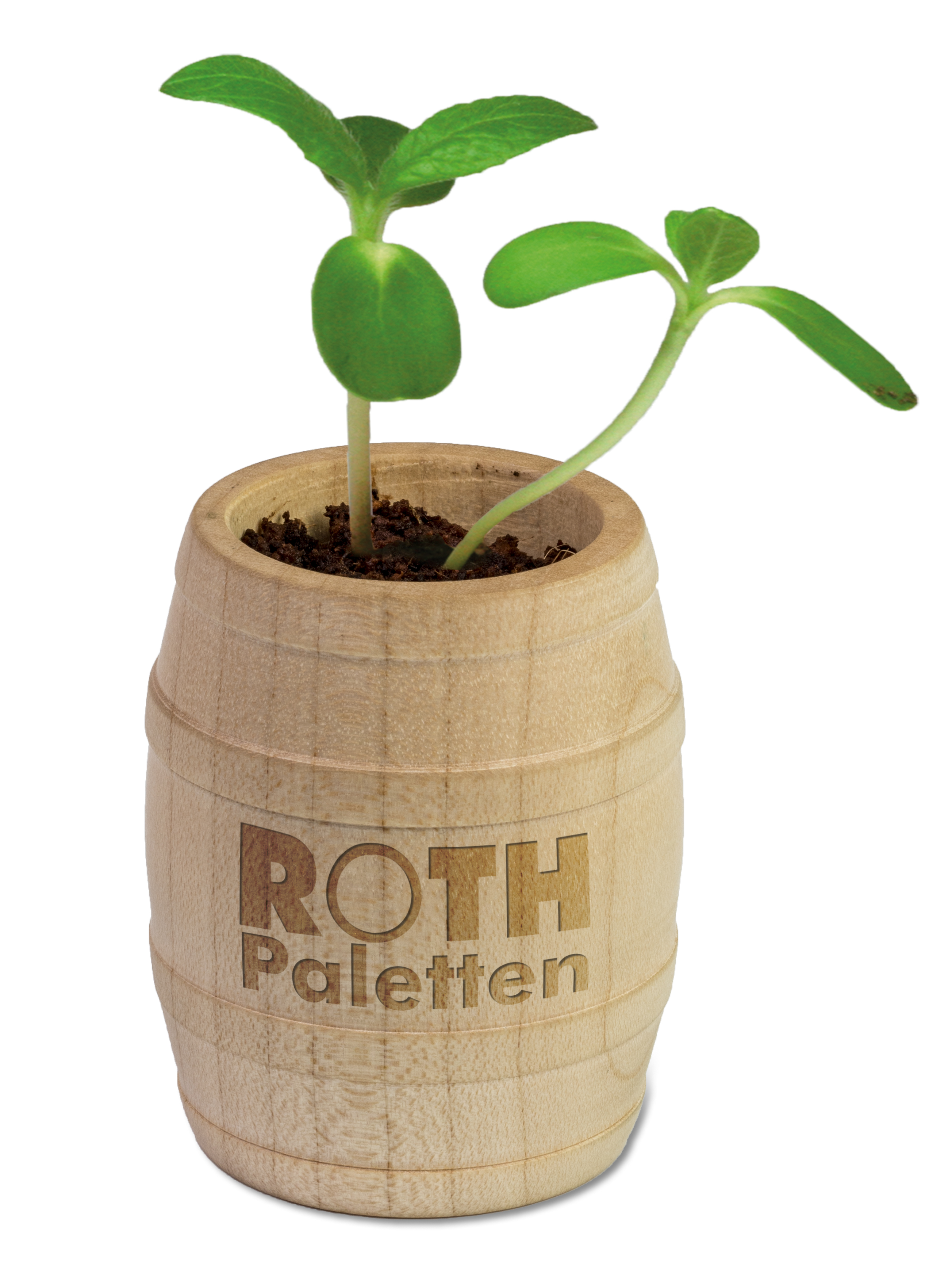 Dieses besondere Fässchen aus europäischem Holz wird gefüllt mit einer Substrattablette als Erde, Samen nach Wahl und Pflanzanleitung geliefert. Mit dem individuell gestalteten Papieraufkleber als Deckel bringen Sie Ihre Werbebotschaft ins Rollen. Optional ist eine Lasergravur auf dem Gefäß möglich.