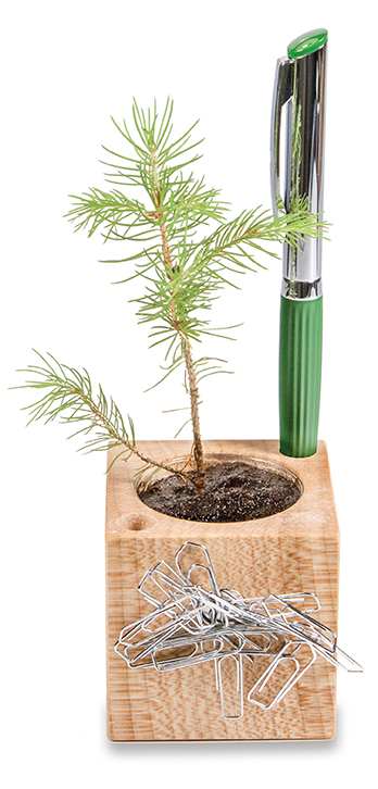 Ein maximales Naturerlebnis bietet der große Würfel aus europäischem Holz für das Saatgut und Ihre Werbung. Dieser wird mit beliebigem Samen und einer Substrattablette als Erde geliefert und fordert den Empfänger als Hobbygärtner heraus. Zusätzlich bietet sich der Blumentopf als Stiftehalter an und auf dem seitlich angebrachten Magneten finden auch z. B. Büroklammern Platz. Ihre Werbung ist auf der umliegenden Banderole und optional als Lasergravur auf dem Gefäß möglich. Ein Blickfang auf jedem Schreibtisch und das werbende Unternehmen bleibt in Erinnerung.