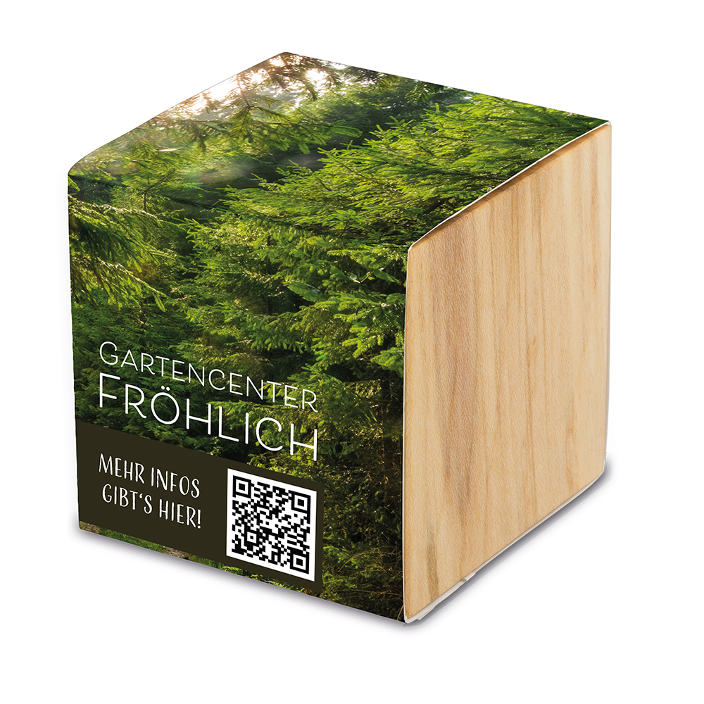 Viel mehr Werbefläche für noch bessere Marken- oder Produktwerbung des Unternehmens bietet das Pflanz-Holz Grande auf seiner umlaufenden Banderole aus Papier. Auf sagenhaften 32 x 7,5 cm kann individuell und hochwertig gedruckt werden. Und auch das bewährte Pflanz-Holz selbst bietet auf 5,5 x 5,5 cm auf allen vier Seiten eine echt "grande" Gravurfläche beispielsweise für Firmenlogo und Co.. In dem Pflanz-Holz befindet sich ein Becher aus Papier, um das Holz vor auslaufendem Wasser zu schützen. Mitgeliefert wird eine Substrattablette als Erde und eine Samensorte nach Wahl. Ein Produkt-Highlight mit großem Werbeeffekt!