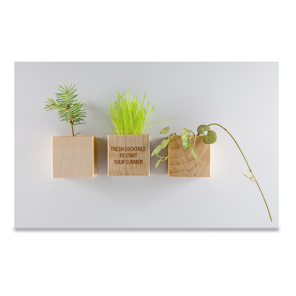 Ob am Kühlschrank, der Pinnwand oder an einer anderen Stelle, dieser Würfel aus europäischem Holz hat "anziehende" Werbewirkung. Der Blumentopf wird mit beliebigem Samen und einer Substrattablette als Erde geliefert. Ein gutes Stück aus der Natur für den Kunden. Ihre Werbung findet auf der umliegenden Banderole Platz und eine Lasergravur auf dem Holzgefäß ist optional möglich.