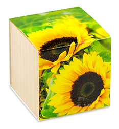 Mit sympathischer Gestaltung ab Lager in kleinen Mengen lieferbar. Keine Druckvorkosten. Der Würfel aus europäischen Holz wird mit Samen und Substrattablette geliefert.