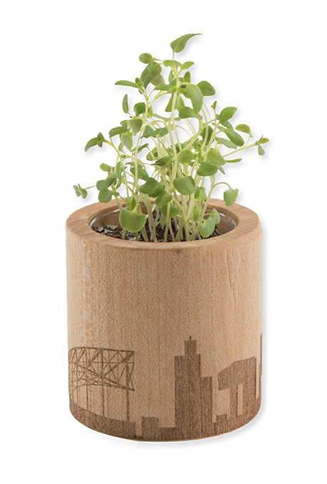 Das dekorative Pflanz-Holz rund aus hellem, europäischen Holz, wird mit Fichtensamen und einer Substrattablette als Erde geliefert. Ihre Werbung findet auf der umliegenden Banderole Platz und optional ist eine Lasergravur auf dem Holzgefäß möglich. Der sympathische Mini-Blumentopf macht den grünen Fingerabdruck des werbenden Unternehmens sichtbar.