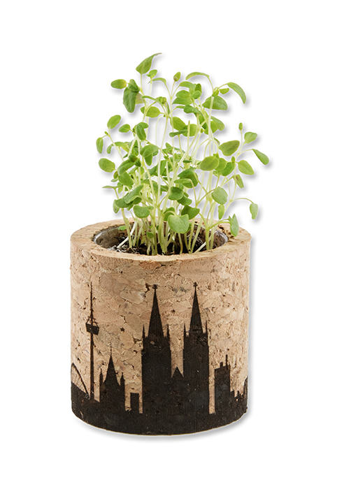 Kork ist das Trendmaterial und zeigt Ihre Naturverbundenheit. Das dekorative Pflanz-Kork rund besteht aus nachwachsendem Rohstoff und macht eine sensible Auswahl des werbenden Unternehmens sichtbar. Geliefert wird der Mini-Blumentopf mit einer Samensorte nach Wahl und einer Substrattablette als Erde. Ihre Werbung findet auf der umliegenden Banderole Platz, auch eine Lasergravur auf dem Korkgefäß ist möglich.
