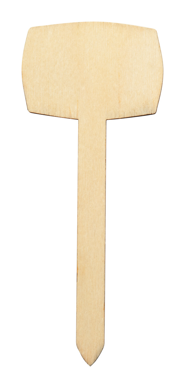 Vollfarbig bedrucktes T-förmiges Pflanzenetikett aus Sperrholz. Ideal für Anzuchtschalen oder Töpfe. Der Preis beinhaltet UV-LED-Druck auf einer Seite. Mindestmenge: 100 Stück.