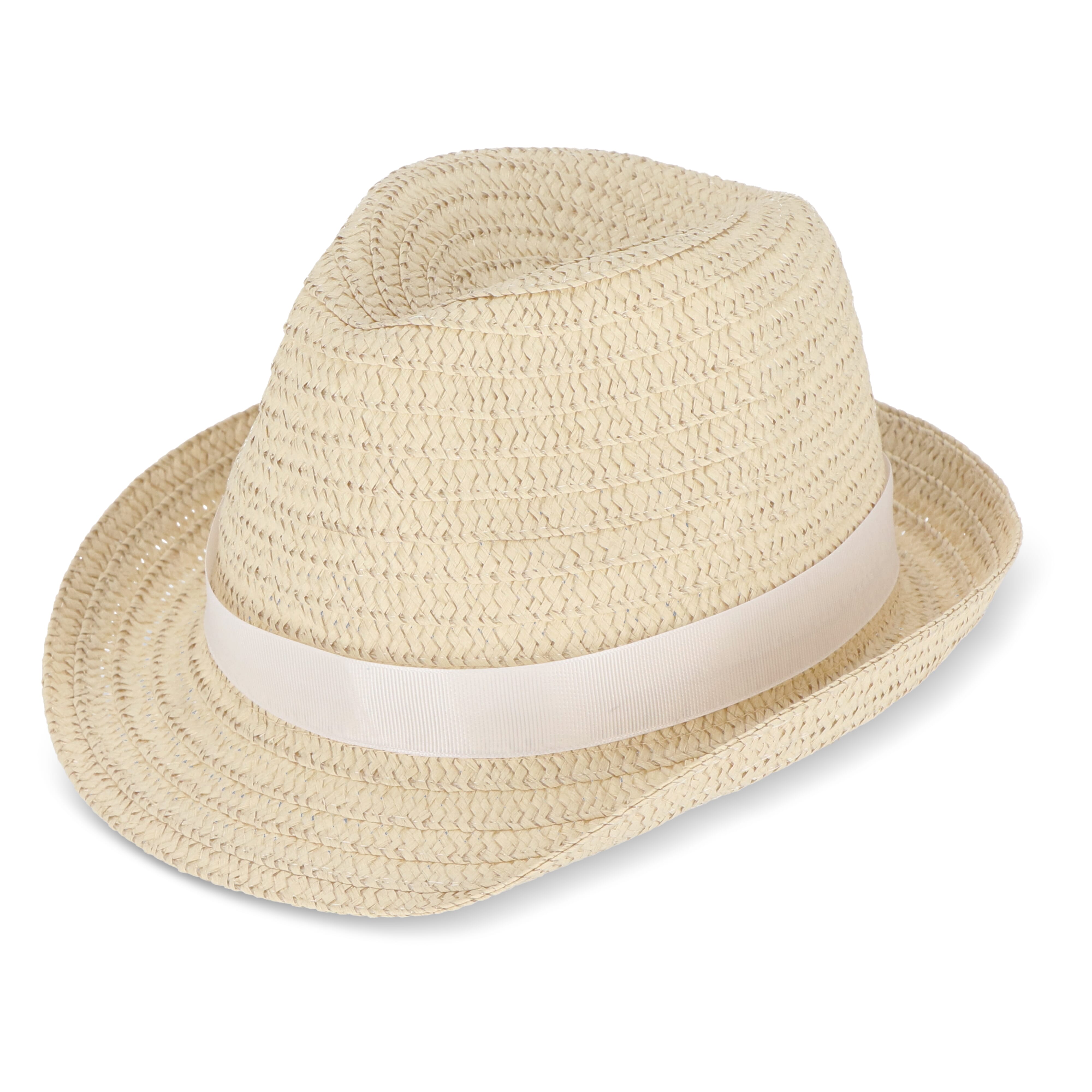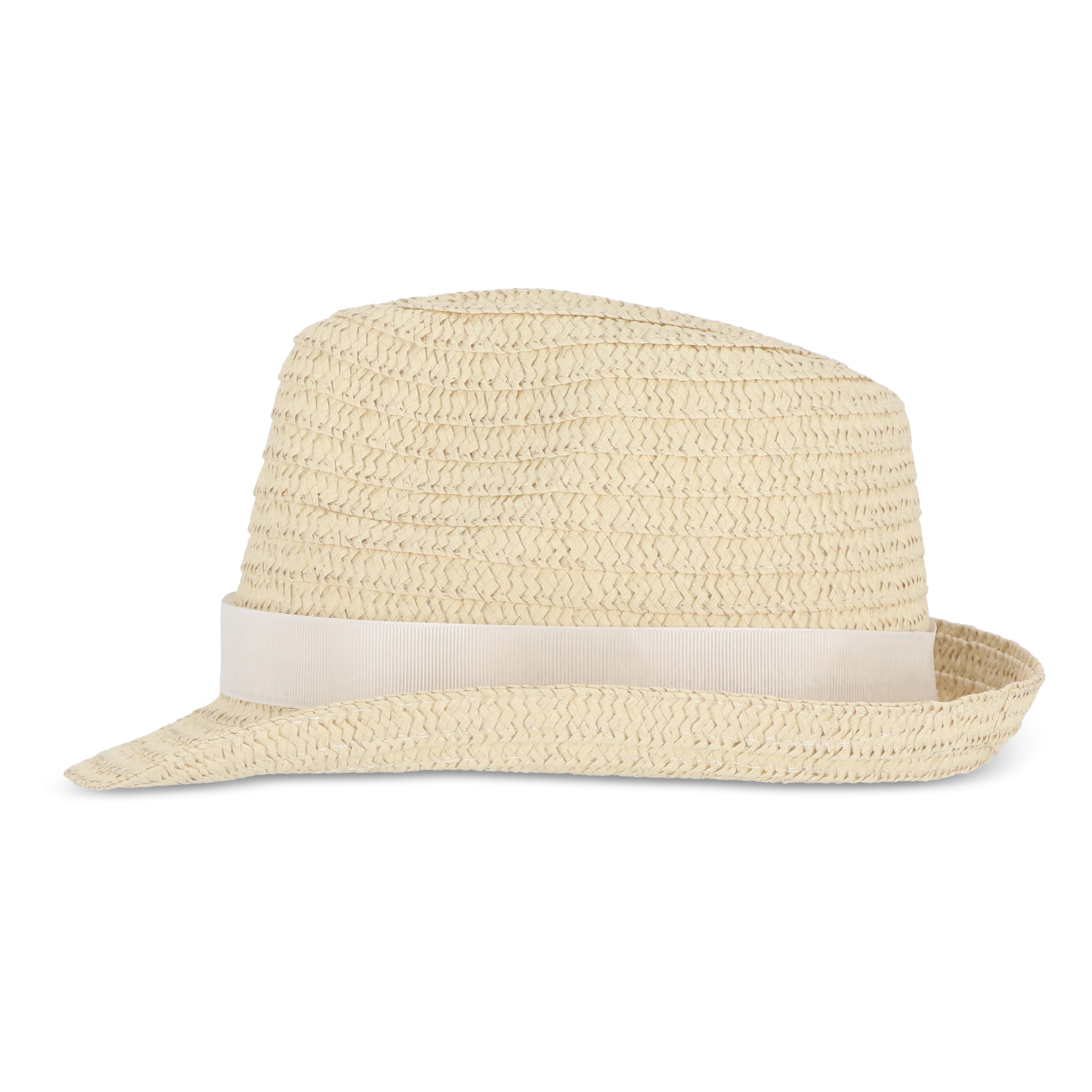 Strohhut Zelio (weiss) mit bedrucktem Hutband