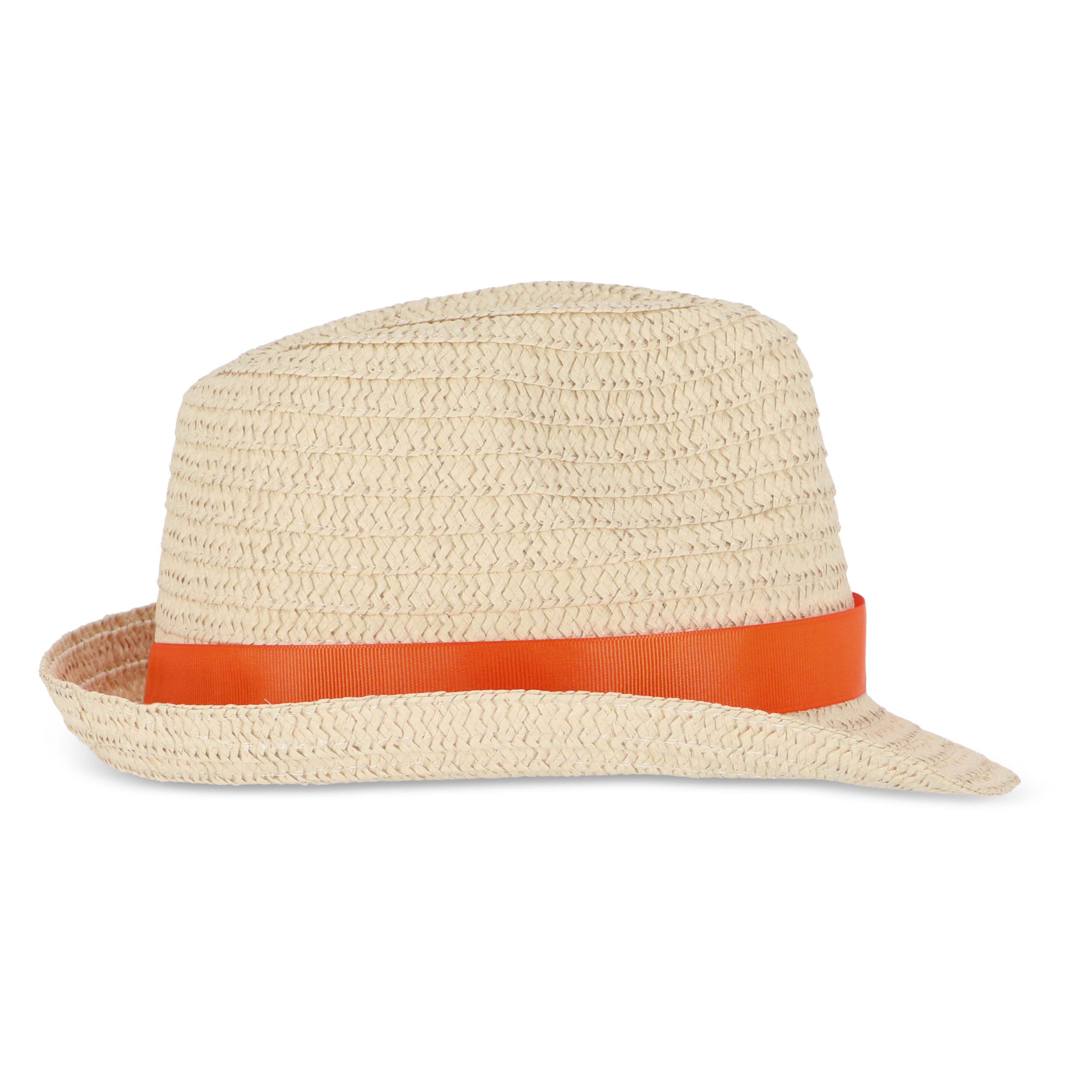 Strohhut Zelio (weiss) mit bedrucktem Hutband