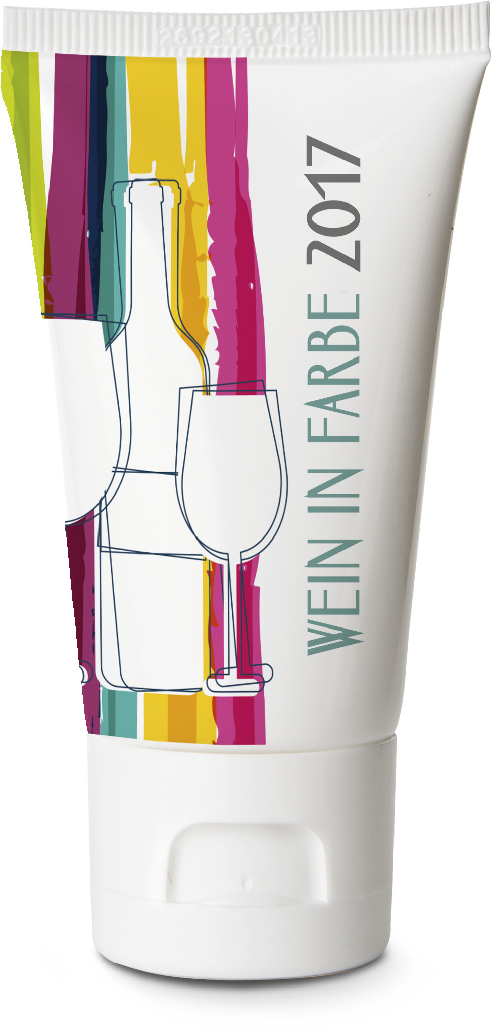 Veredelung: Tampondruck 50 ml, Werbeanbringung vorne auf der Tube, max. 3,4 x 6,3 cm