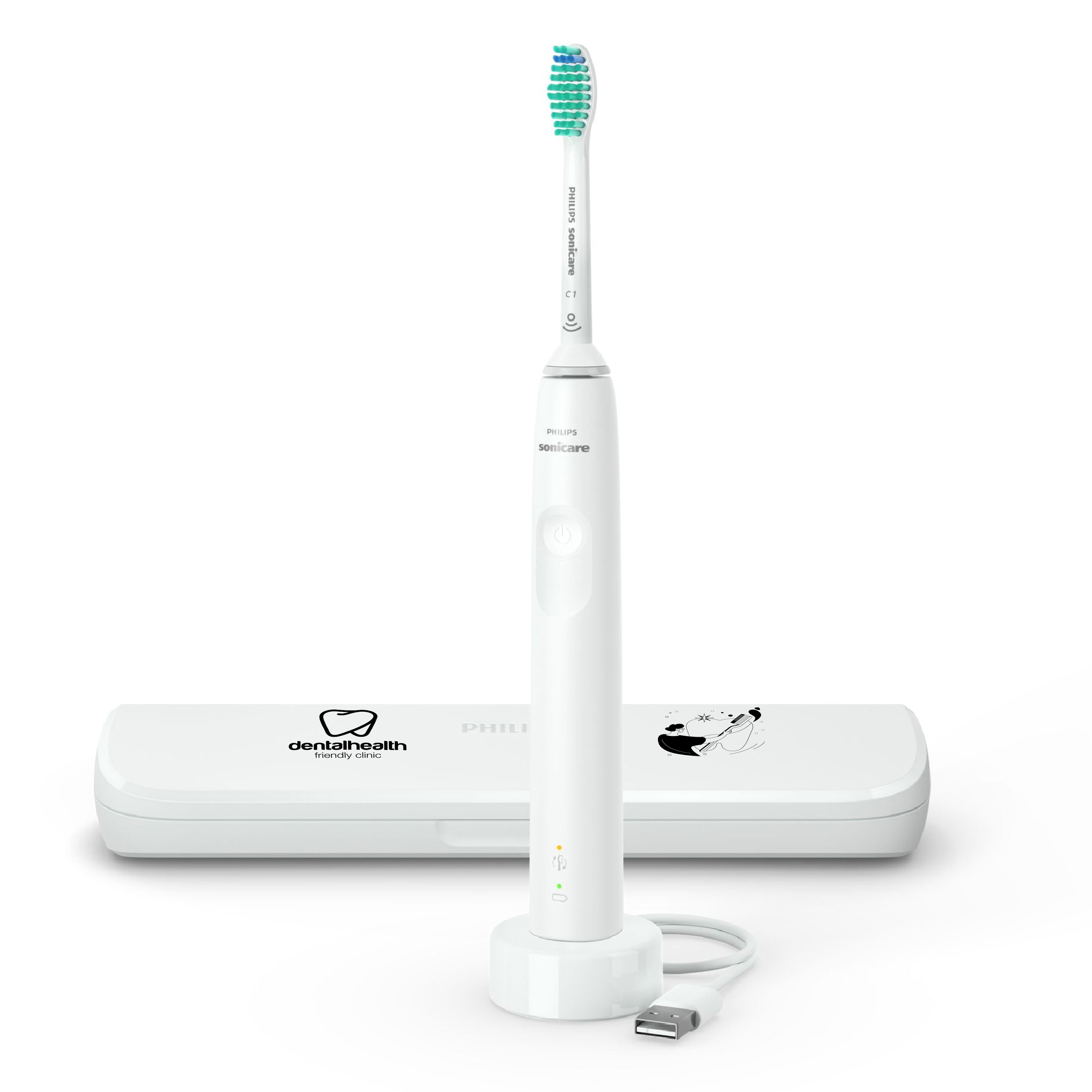 In Kombination mit der Sonic-Technologie und der Wirkung der Bürstenköpfe entfernt die elektrische Zahnbürste bis zu 3-mal mehr Plaque als eine Handzahnbürste. Der integrierte Drucksensor der Zahnbürste schützt Ihre Zähne und Ihr Zahnfleisch.