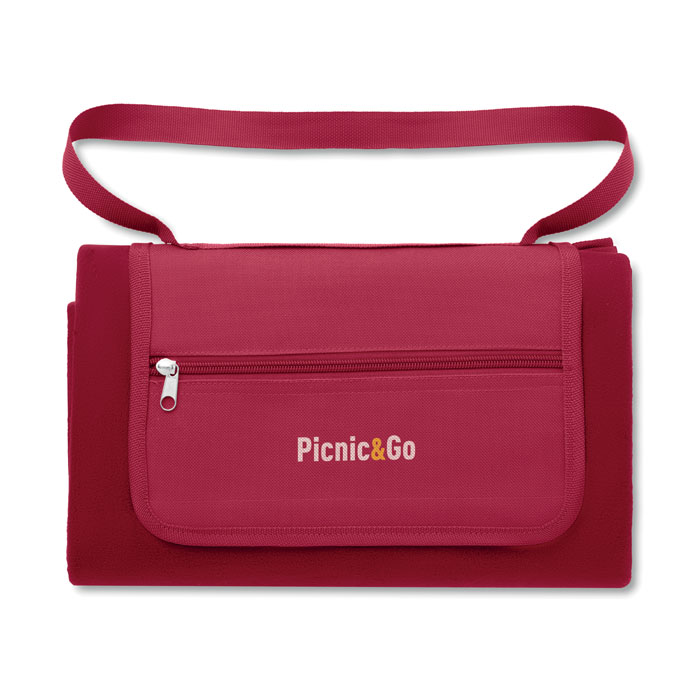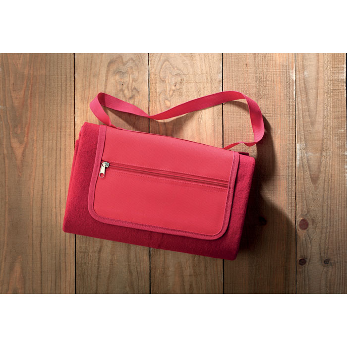 Faltbare Fleecedecke mit wasserabweisend beschichteter PEVA-Rückseite. Trageschlaufe.