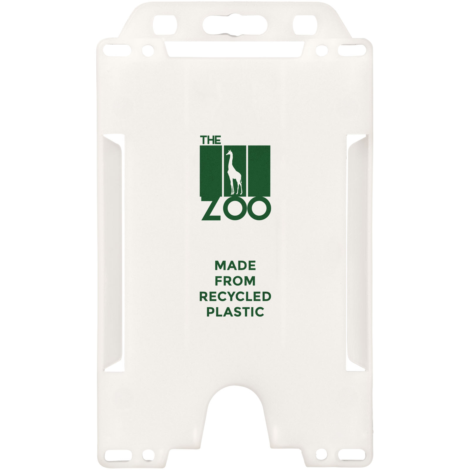Der Kartenhalter im Hochformat ist aus recyceltem Kunststoff hergestellt. Ideal für Ausstellungen, Arbeitsplätze und Networking-Veranstaltungen. Geeignet für Standard-Visitenkarten und Ausweise in Kreditkartengröße. Aufgrund der Beschaffenheit des recycelten Kunststoffs können die Farbtöne leicht variieren, und es können Farbflecken auftreten. Hergestellt in UK.
