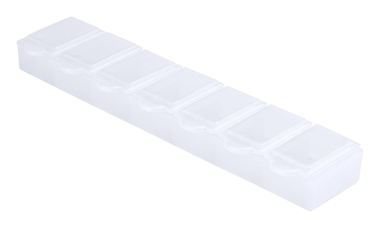 Tablettendose mit 7 Fächern aus Kunststoff.