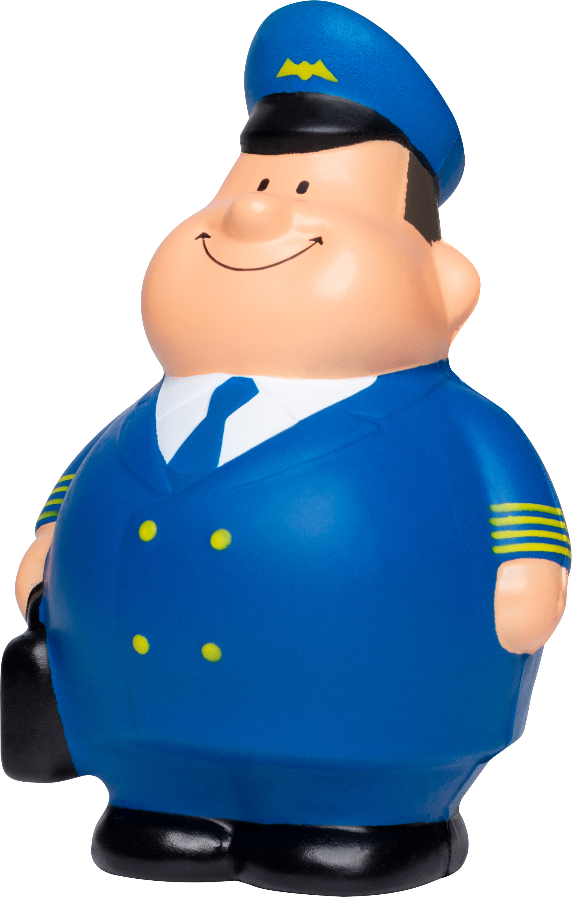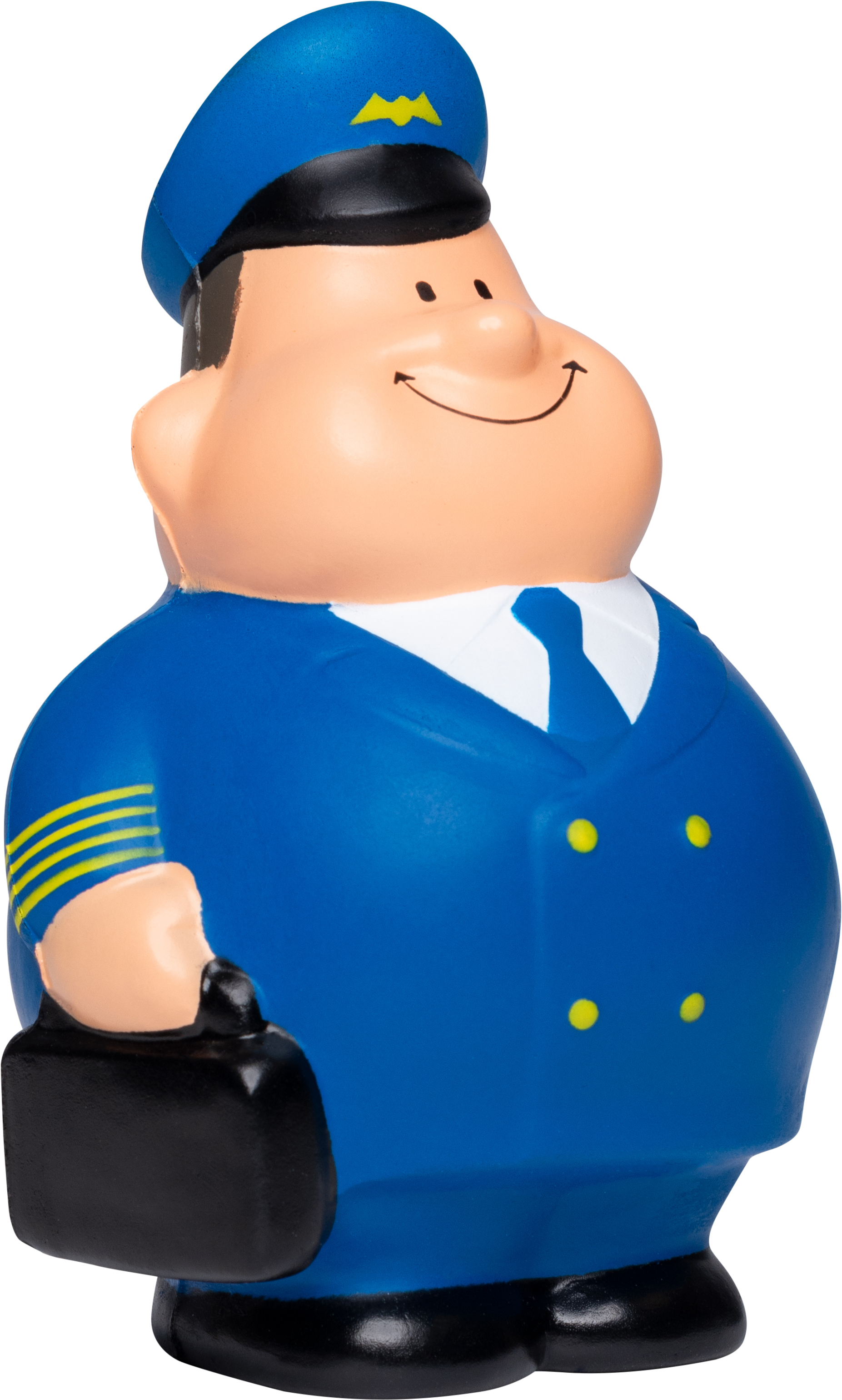 Mit unserem Käpt'n Blau Bert® geht es stressfrei rund um die Welt. Mit der blauen Uniform, passender Kopfbedeckung und dem schnittigen Köfferchen ist er dafür immer perfekt vorbereitet. Er hat schon alle Ecken dieser Welt gesehen. Trotz manch stressiger Flugpläne hat er immer ein Lächeln auf den Lippen. Damit es Ihnen auch so geht: SQUEEZIES® Käpt'n Blau Bert® zum Abbau von Stress einfach "zusammenknautschen". Durch die Materialbeschaffenheit nimmt das Produkt die Ursprungsform wieder ein.