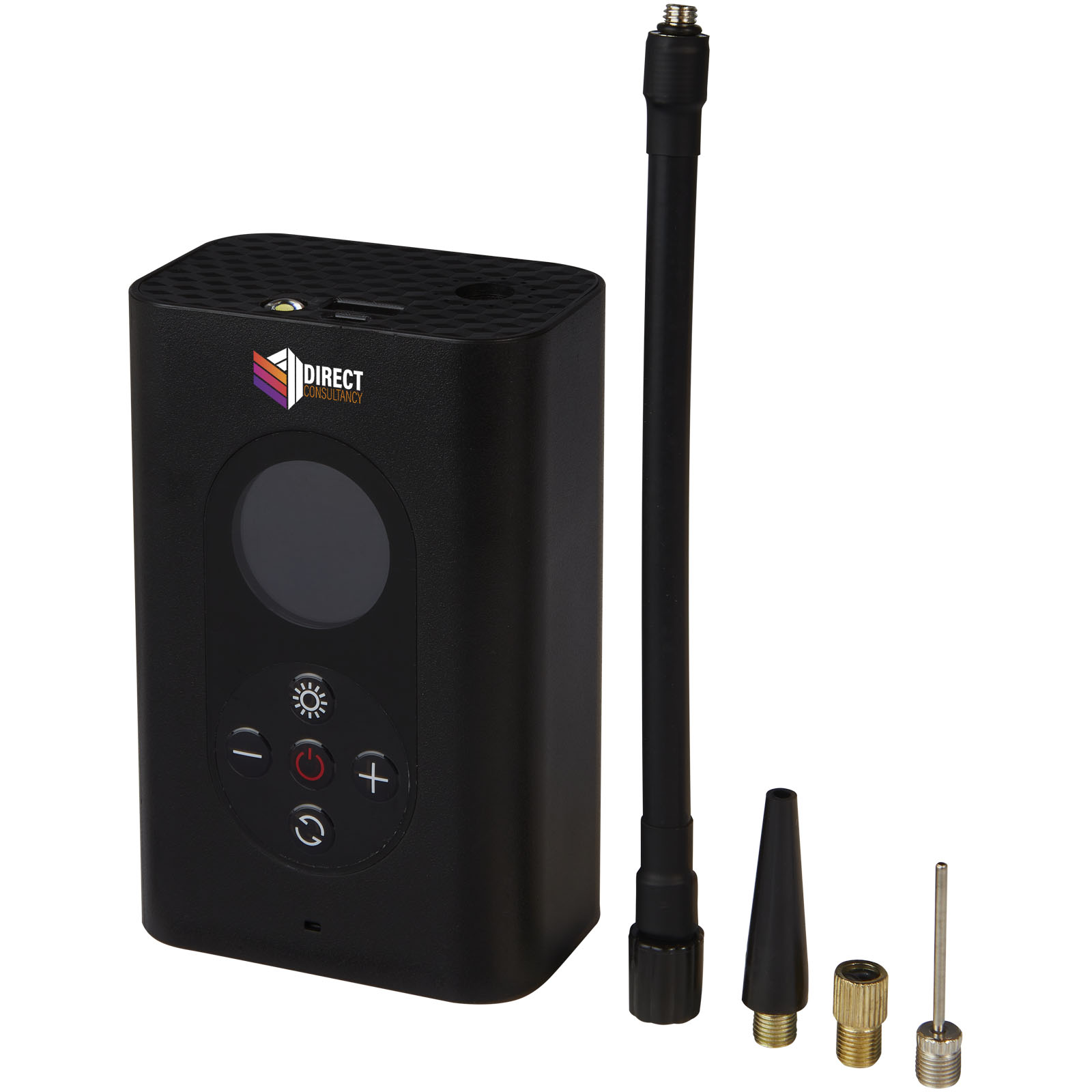 Mit dem tragbaren Pilot-Luftkompressor können Sie unterwegs Auto- / Motorradreifen oder einen Fußball oder Ballon aufpumpen. Der integrierte 4000-mAh-Polymer-Akku bietet bis zu 35 Minuten Nutzungsdauer mit einer einzigen Ladung. Maximaler Luftdruck: 150 PSI (990 KPa). Verfügt über ein großes LCD-Display und 4 voreingestellte Modi: Auto, Ballon, Motorrad und Ball. Inklusive Zubehör für die verschiedenen Ventile. Der Luftkompressor kann auch als Notfall-Powerbank mit 5 V/1 A Ausgang verwendet werden. Der Kompressor ist in 3 Stunden von 0 auf 100 % aufgeladen. Er wird mit einer Tasche für einfachen Transport und Aufbewahrung geliefert und in einer hochwertigen Tekiō-Kraftpapierbox mit buntem Aufkleber geliefert.