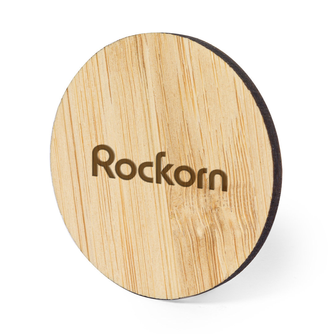 Linie "Natur" Anstecknadel aus Bambus, hergestellt aus natürlichen Ablegern. Hergestellt in Europa und erhältlich in runder und quadratischer Ausführung, mit magnetischem Stift.