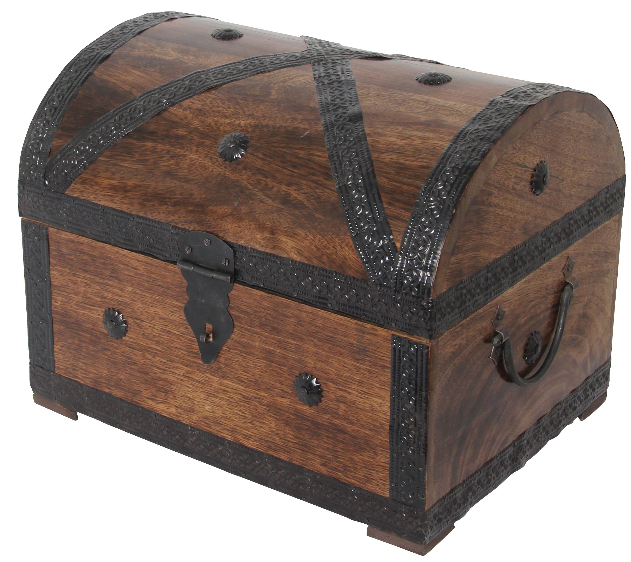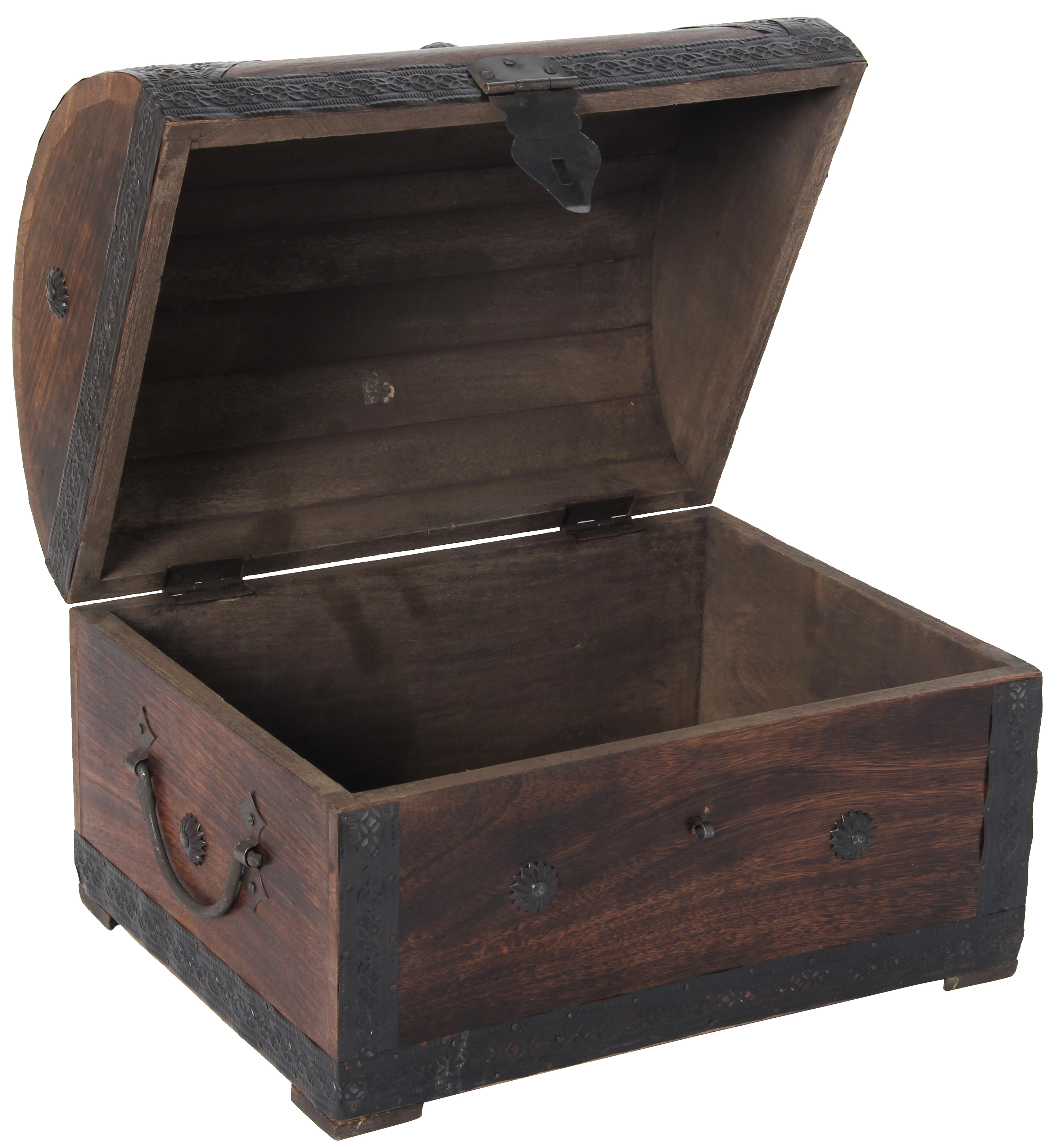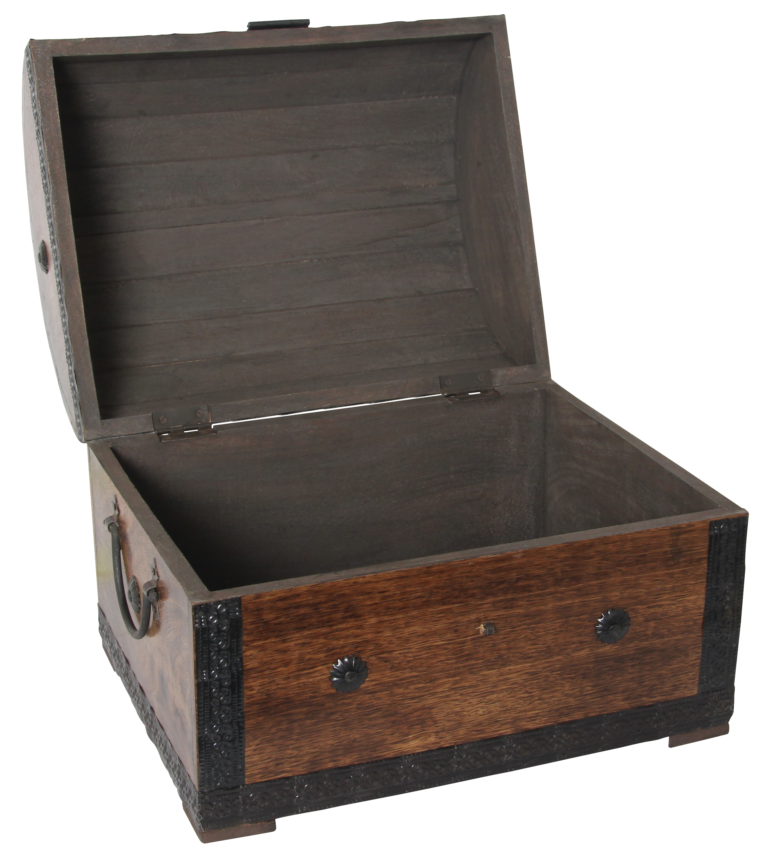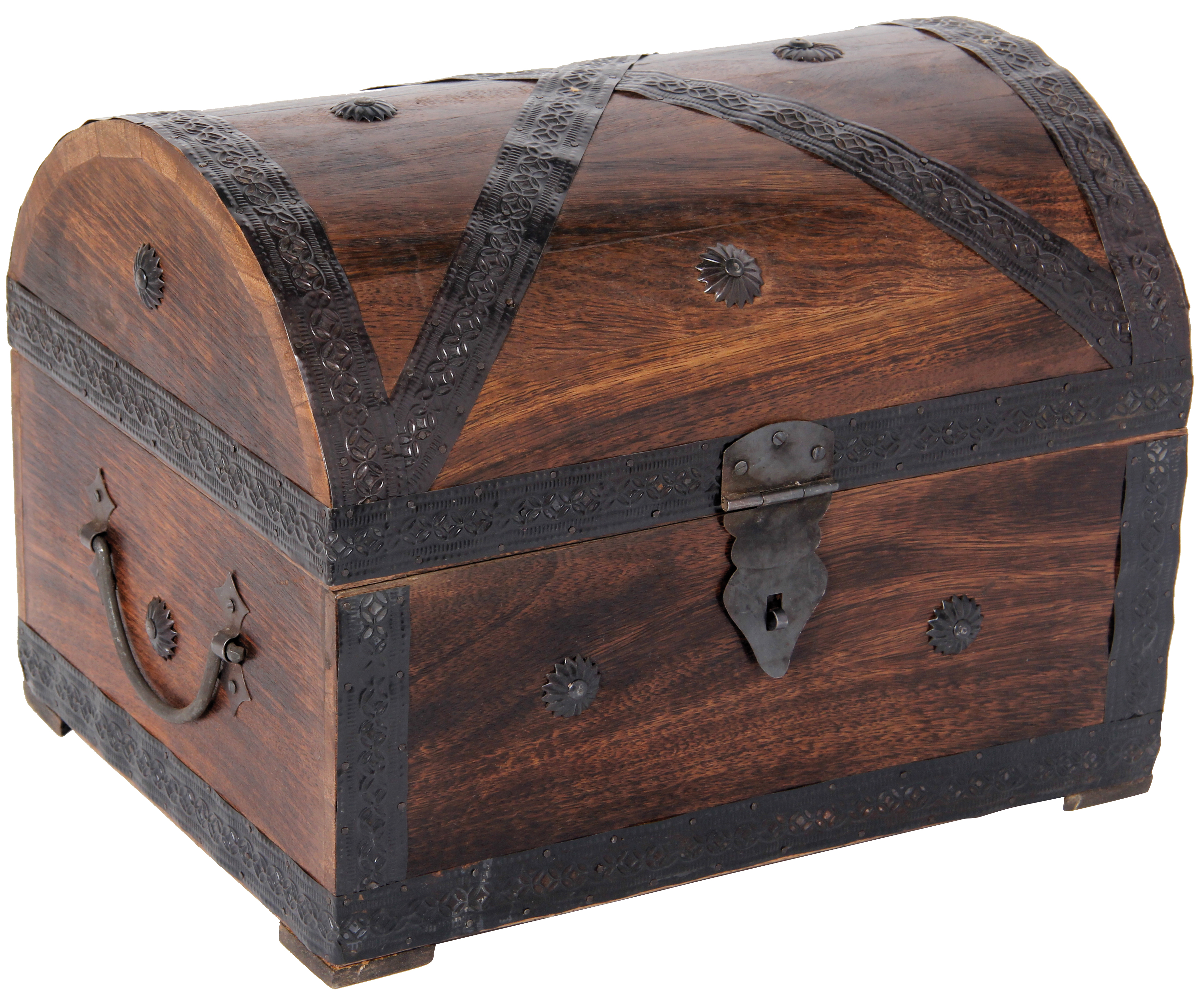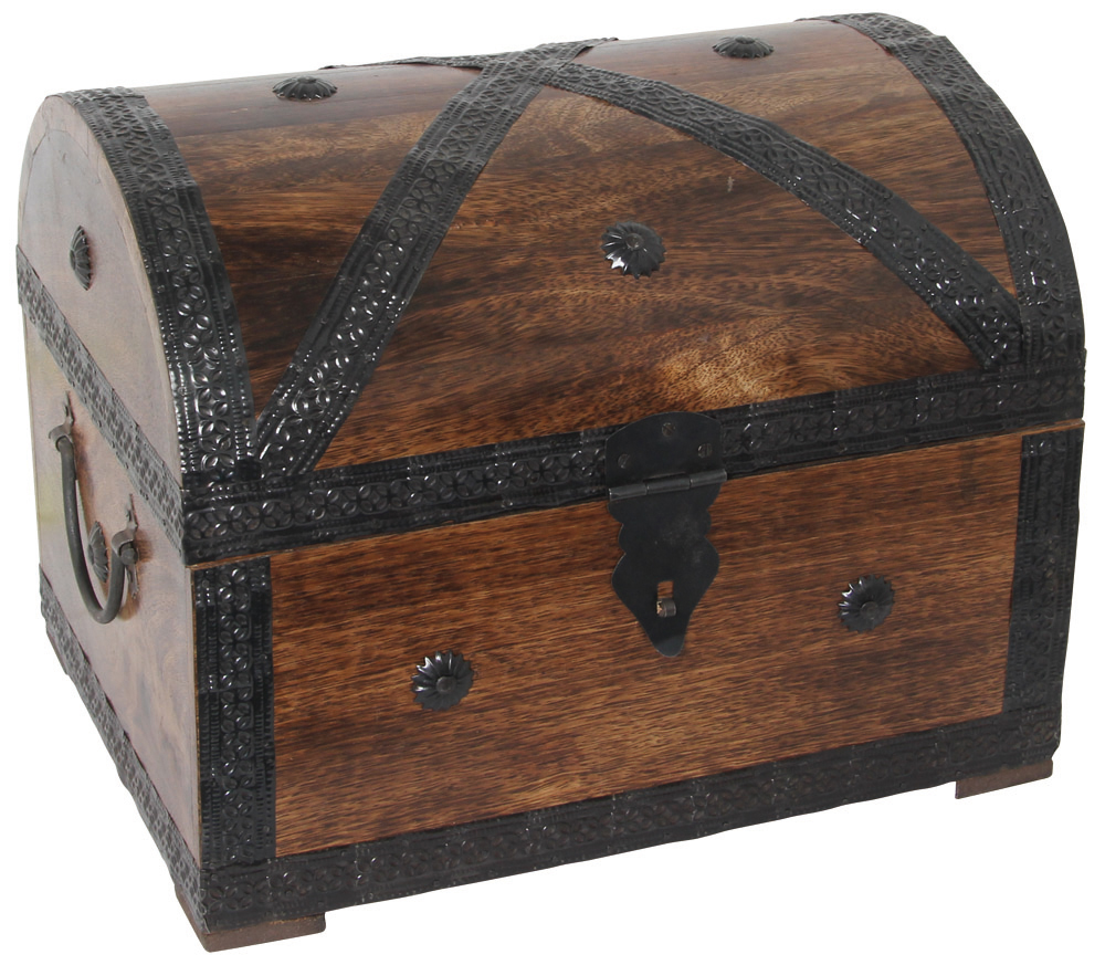 Dekorative Massivholz-Kiste in exklusivem Design! Mit rustikalen Metallbeschlägen und Griffen.