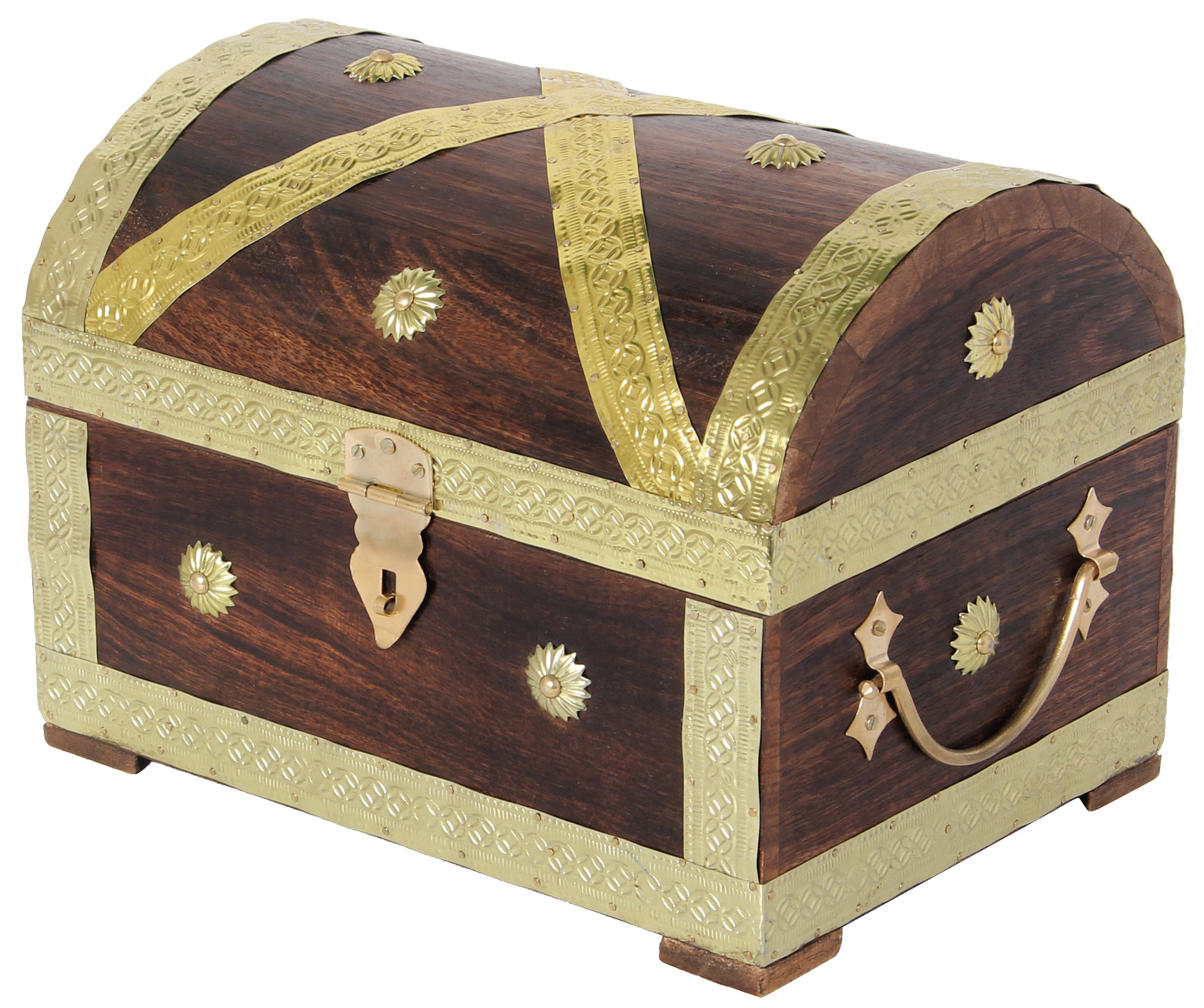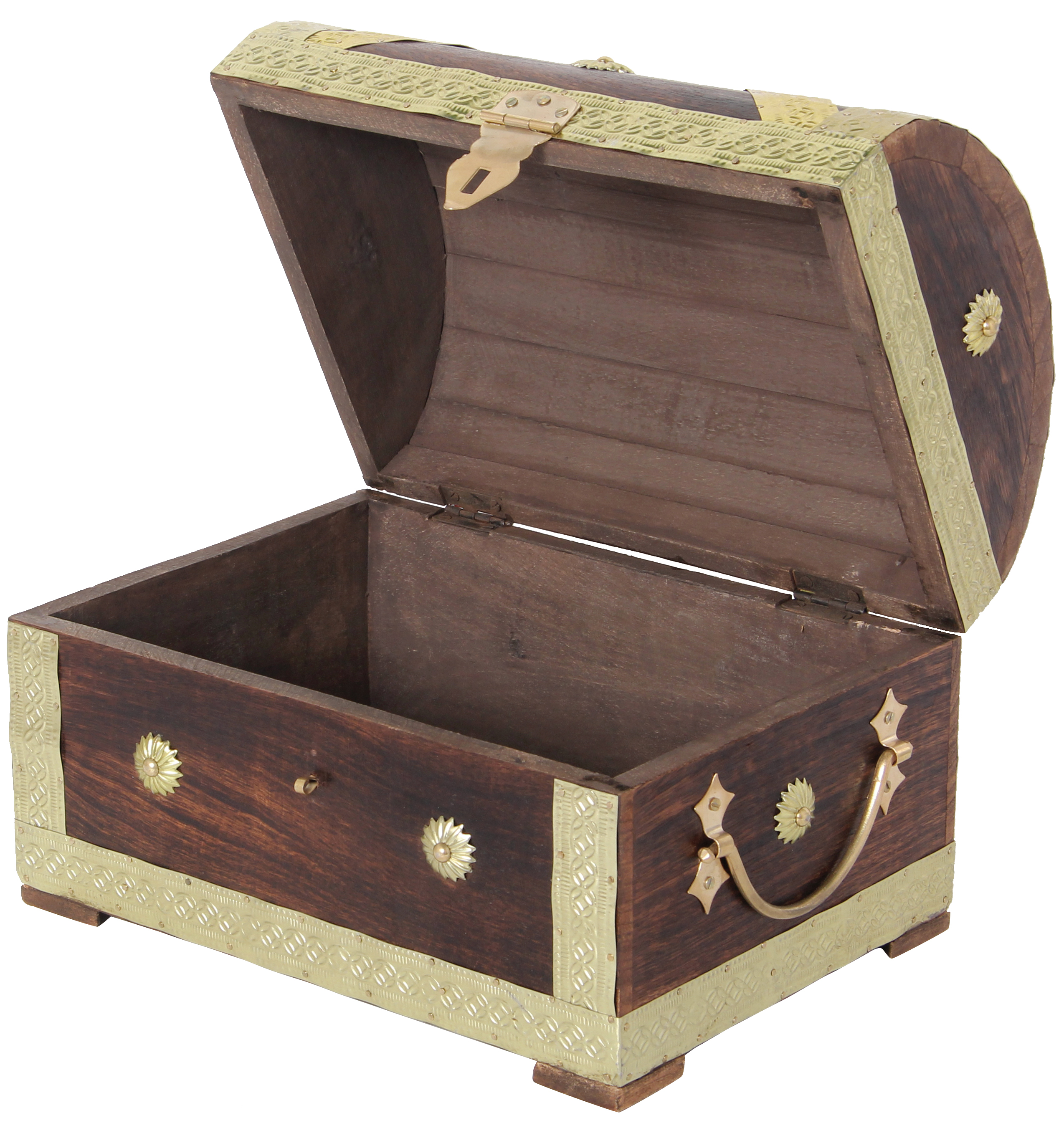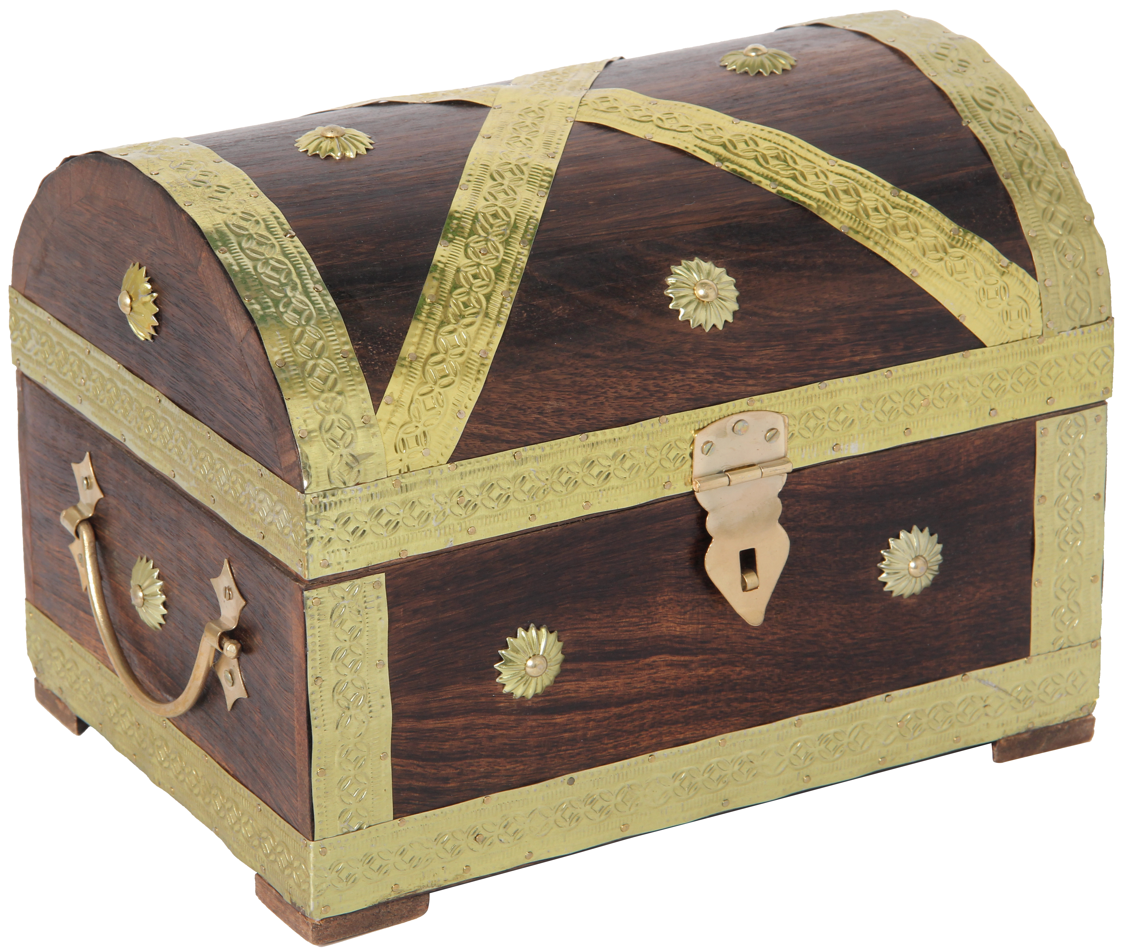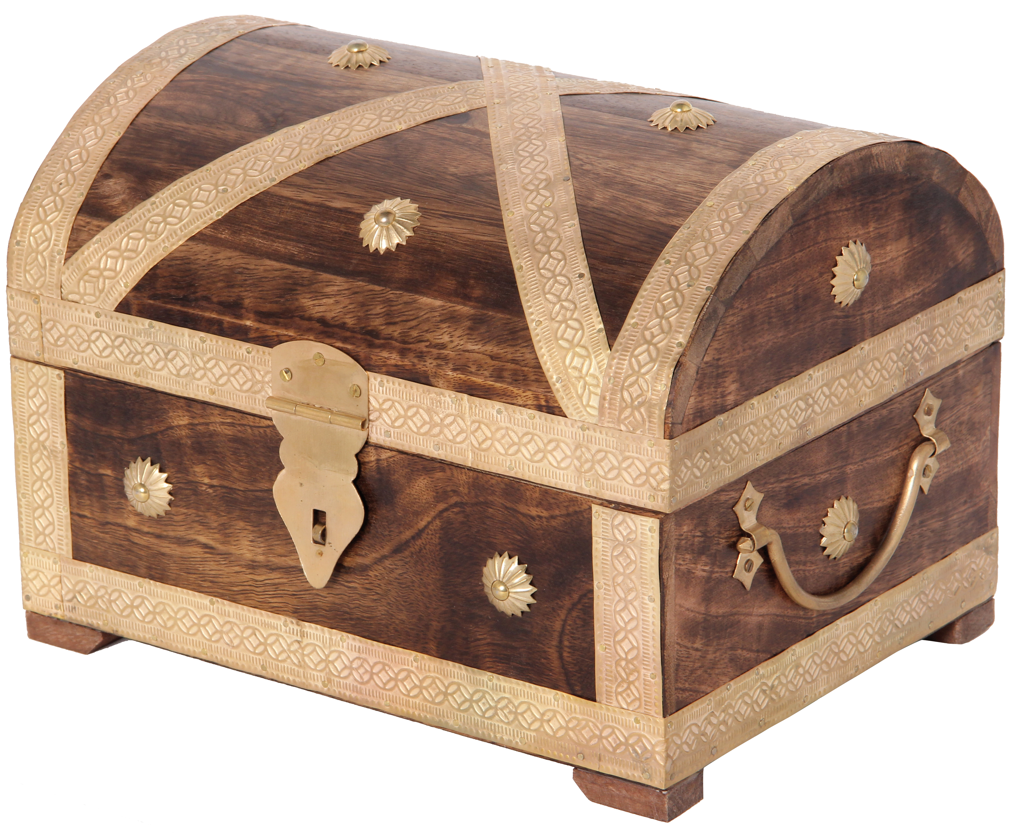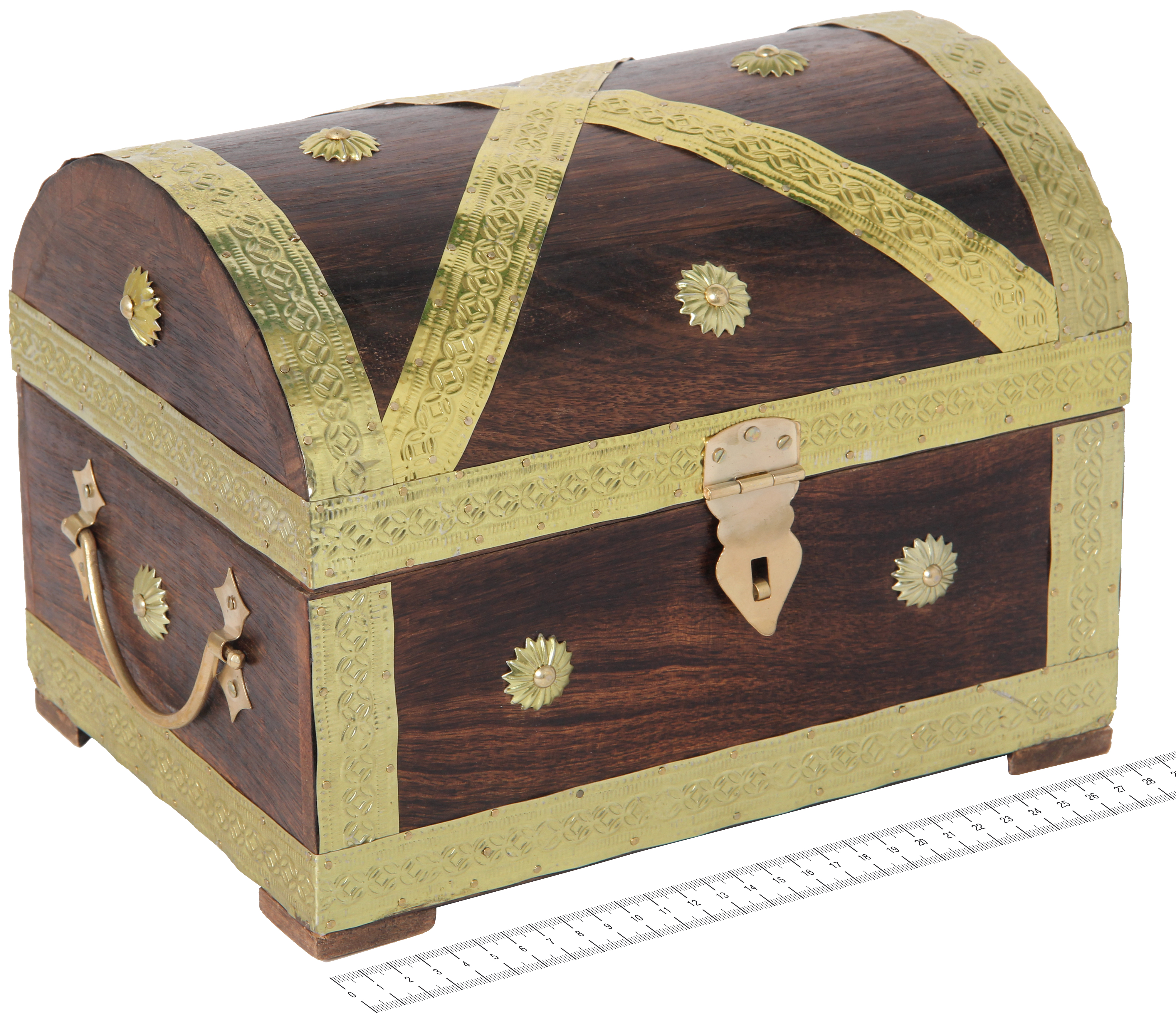 Nostalgische Truhe aus Holz mit Metallbeschlägen. Durch die reine Handarbeit sind leichte Farb- und Größenabweichungen möglich.