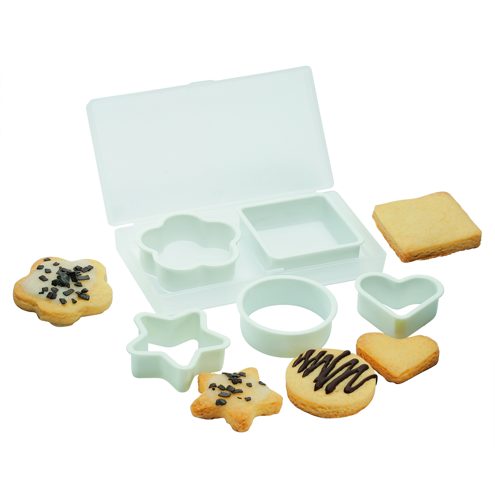 Plätzchenausstecher-Set 5 Ausstechformen Herz, Stern, Blume, Kreis und Quadrat in praktischer Box mit großer Druckfläche. Nicht nur für die Weihnachtszeit.
