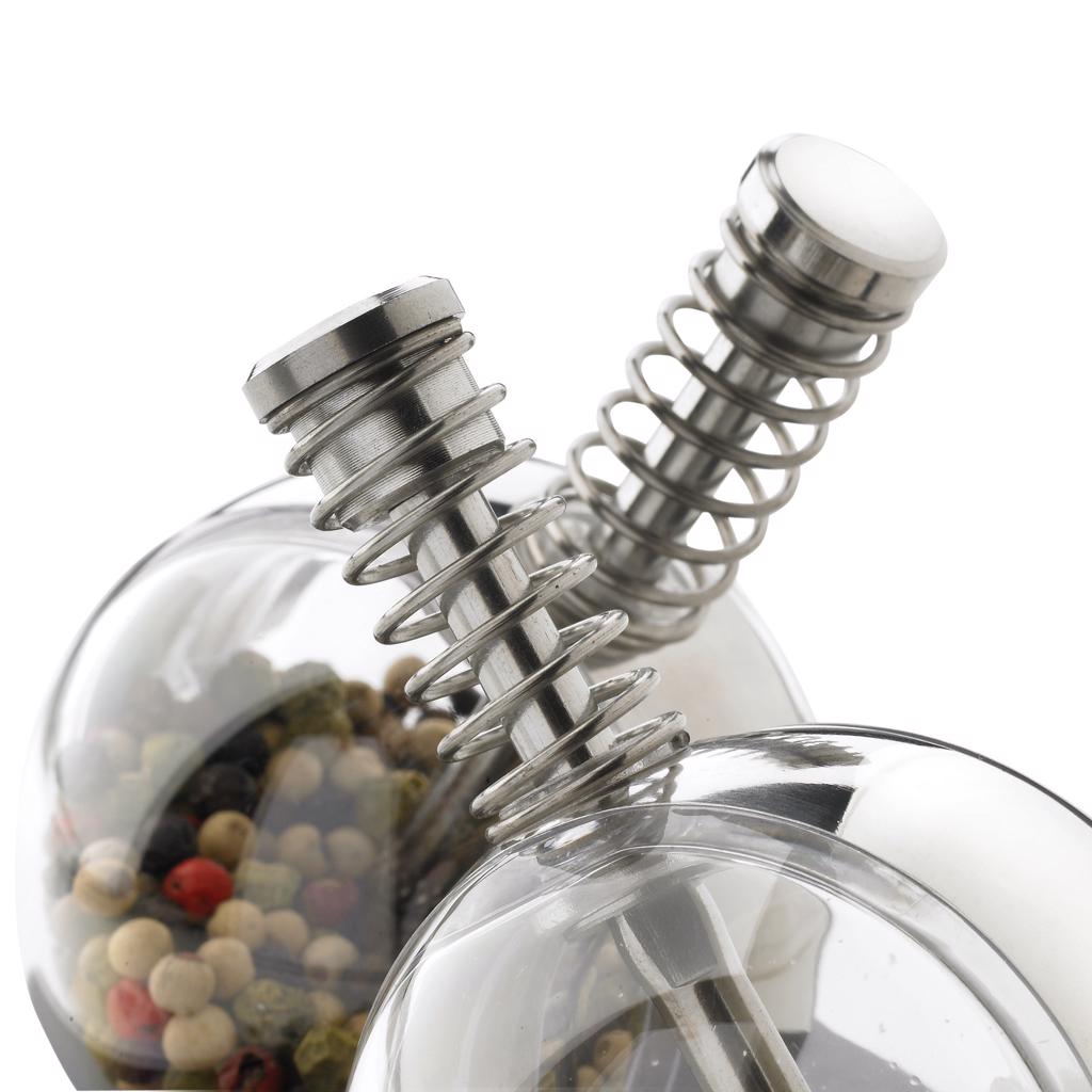 Dieses stylische Salz & Pfeffer Set hat einen einzigartigen Druckmechanismus in jeder Mühle und sie sind somit leicht einhändig zu bedienen. Durch das durchsichtige Design der Behälter sehen Sie jederzeit, wieviel Salz & Pfeffer noch vorhanden ist. Geschütztes Design®
