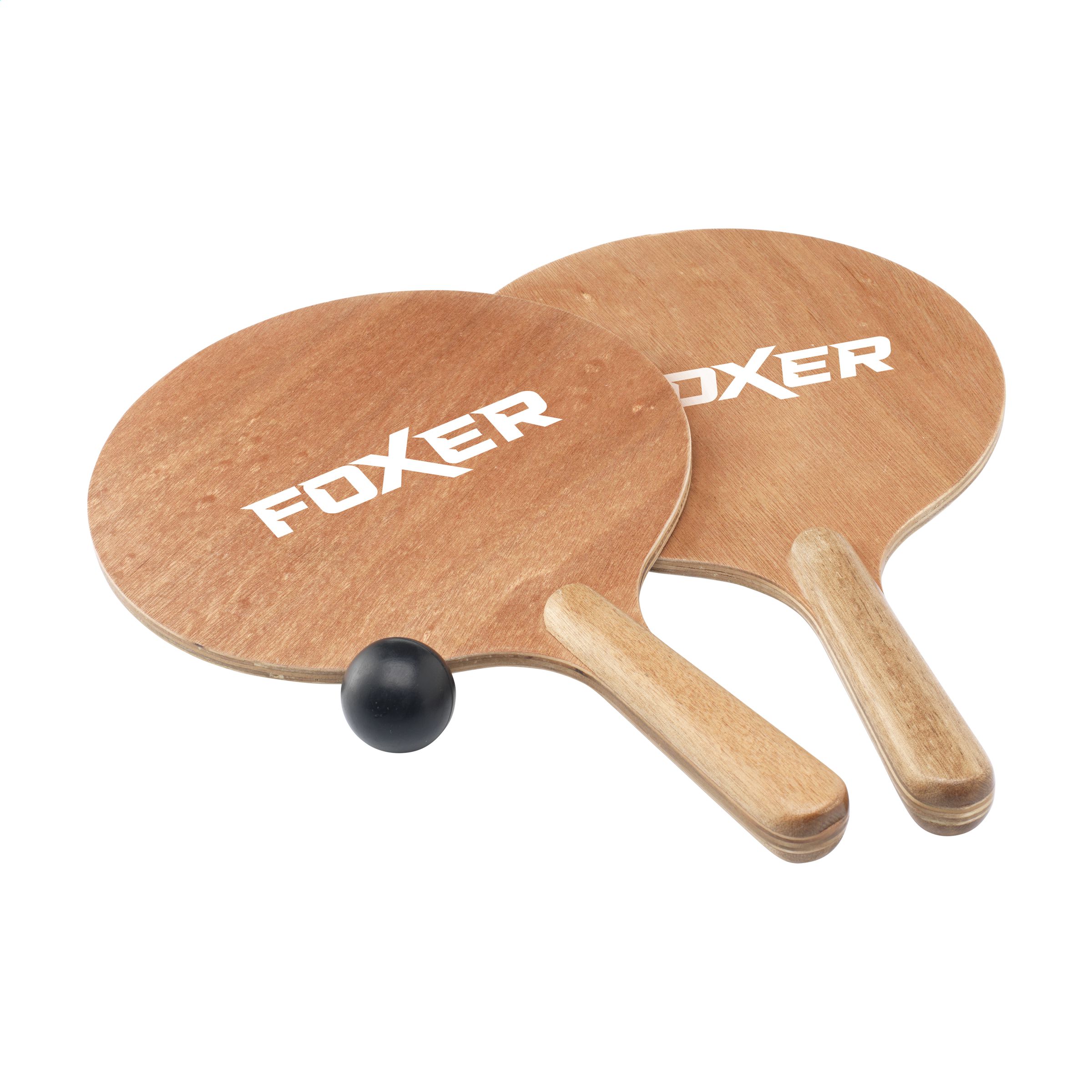 WoW! Ein sportliches Beachtennis-Set in einer Luxusausführung. Das Set besteht aus 2 Holzschlägern und 2 Gummibällen. Die Schläger sind aus MDF-Holz mit einem Finish aus schönem und robustem Pappelholz gefertigt. Man spielt dieses Spiel mit 2 Personen. Eine originelle Aktivität am Strand, im Park oder auf dem Campingplatz. Dieses Set wird in einem praktischen Aufbewahrungsbeutel aus Baumwolle geliefert.