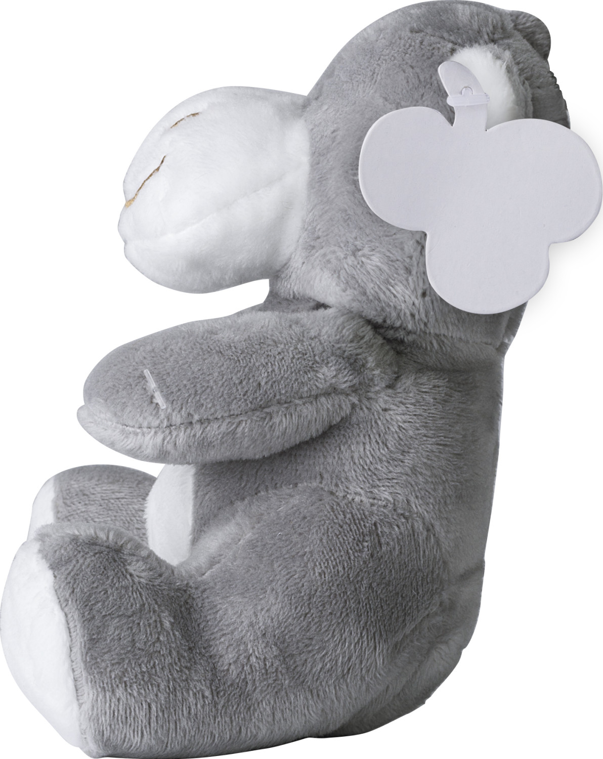 Nilpferd aus Plüsch. Mit gestickten Augen. Enthält einen Anhänger zum Bedrucken.