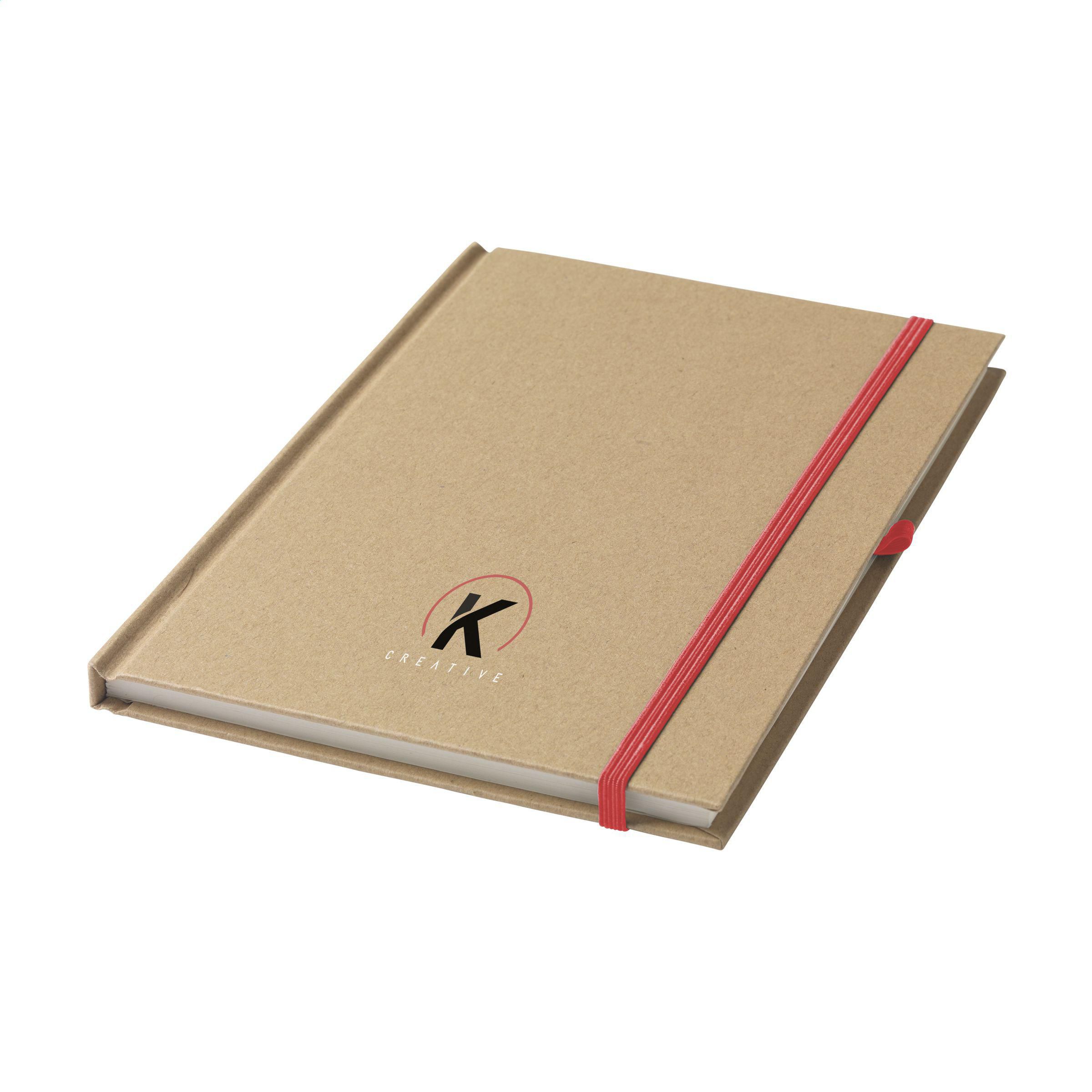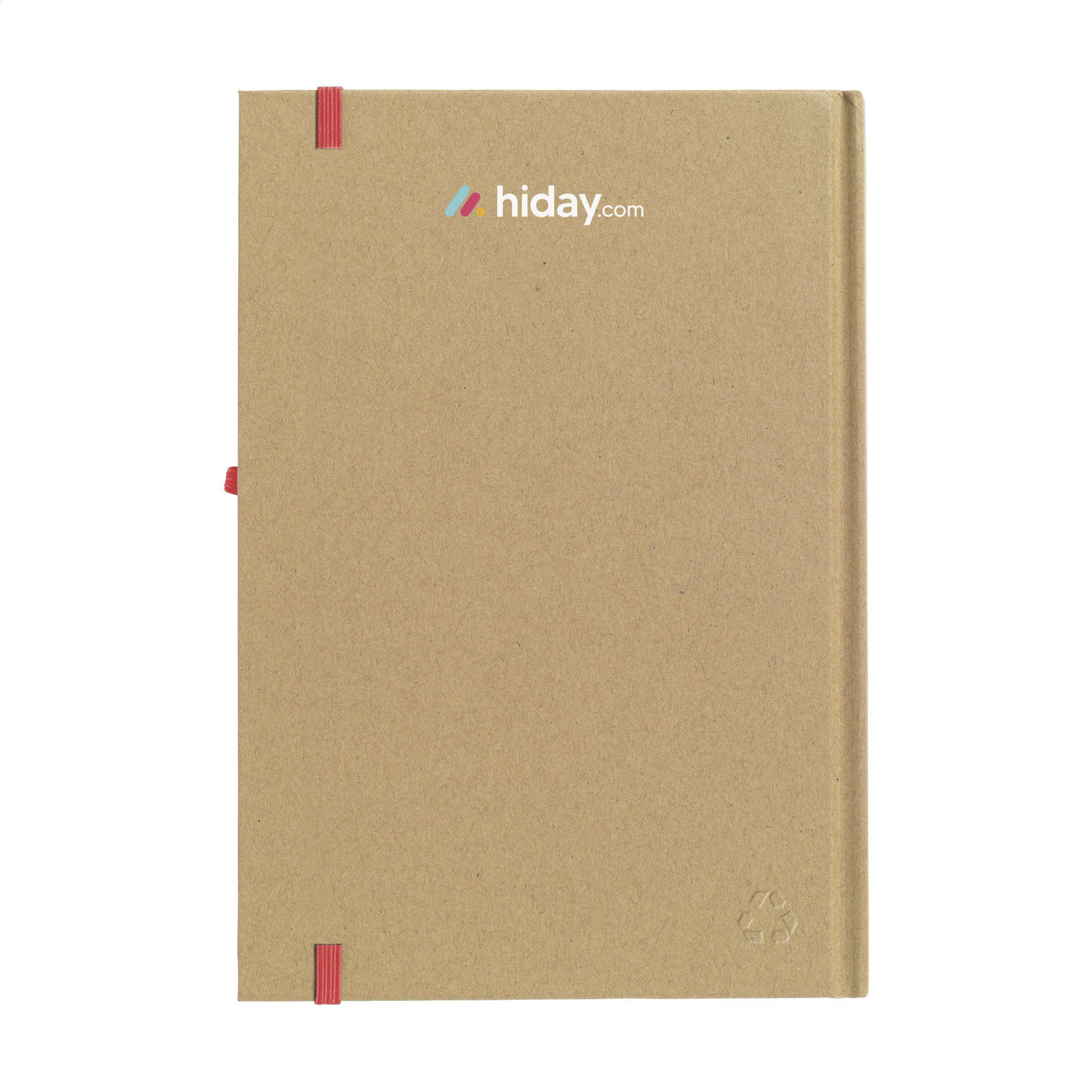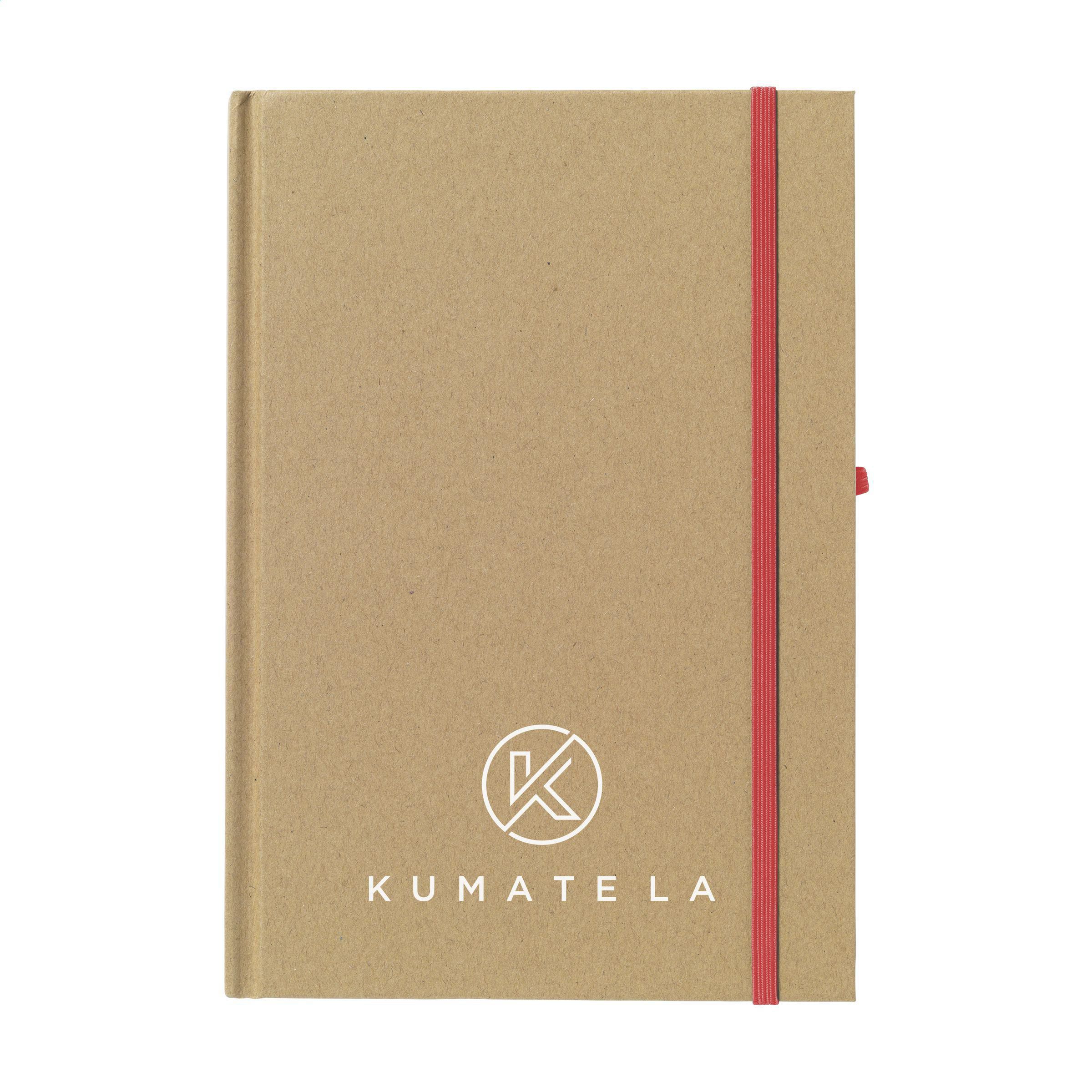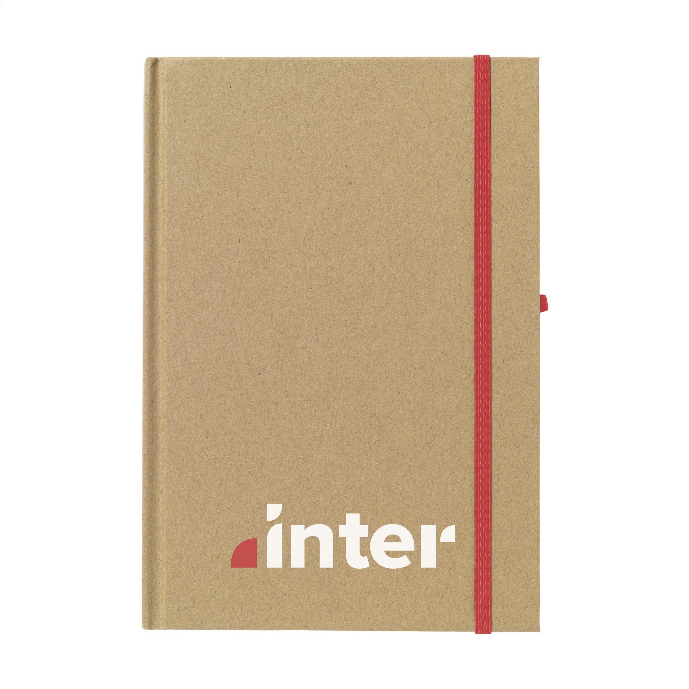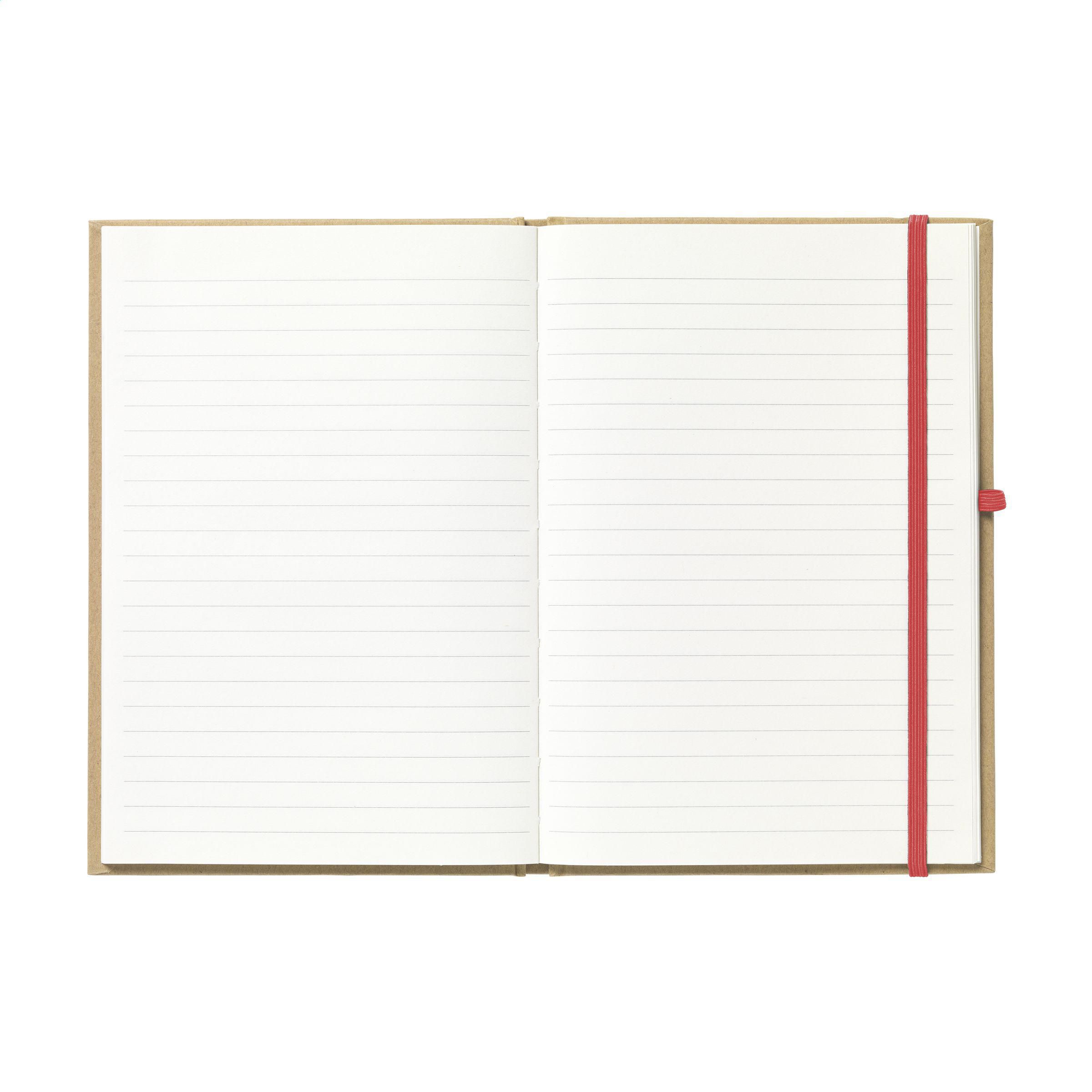 Notizbuch im A5-Format aus recyceltem Material. Mit ca. 80 Blatt/160 Seiten cremefarbenem, liniertem FSC Mix zertifiziertes Papier (70 g/m²), praktischem Stiftfach und elastischem Verschluss.