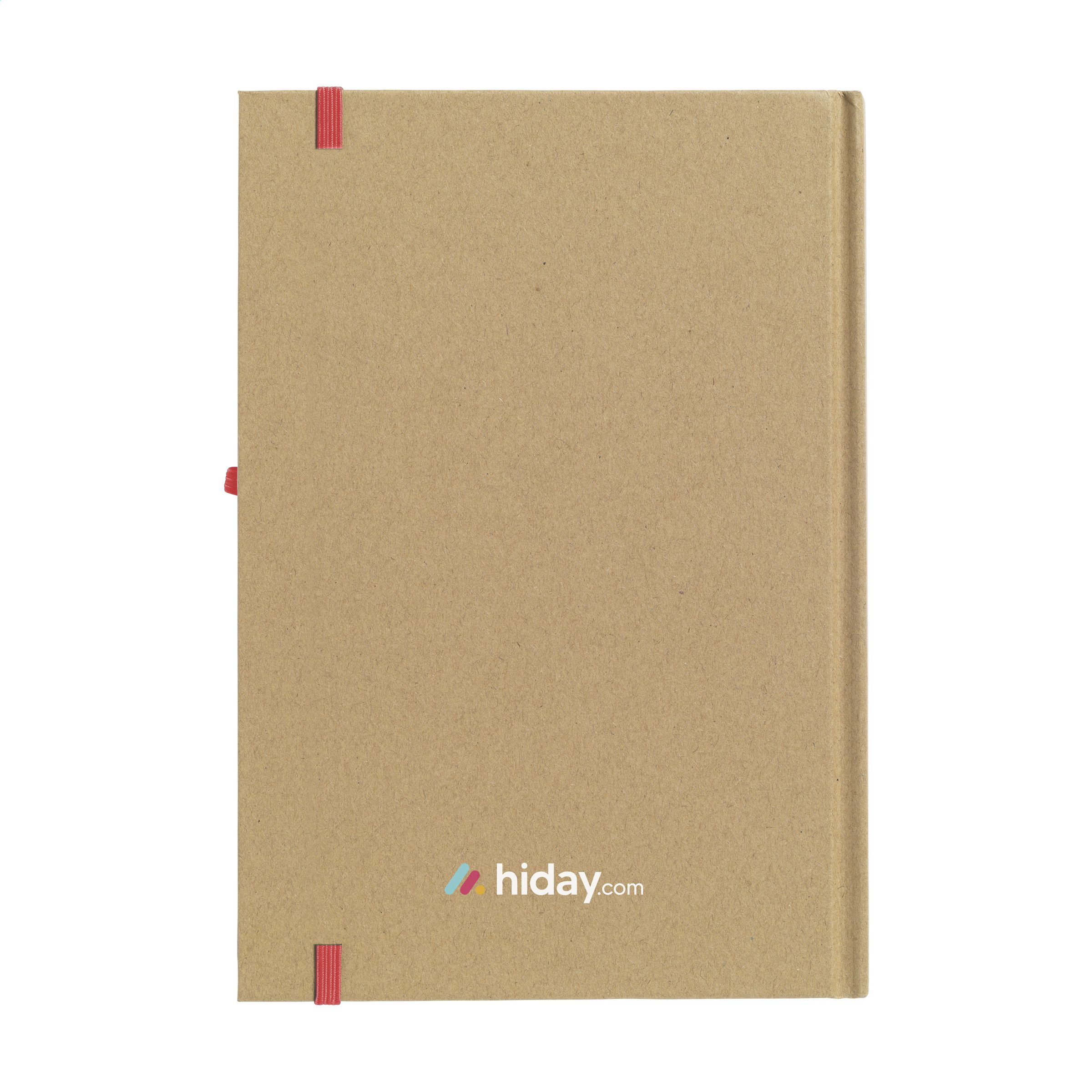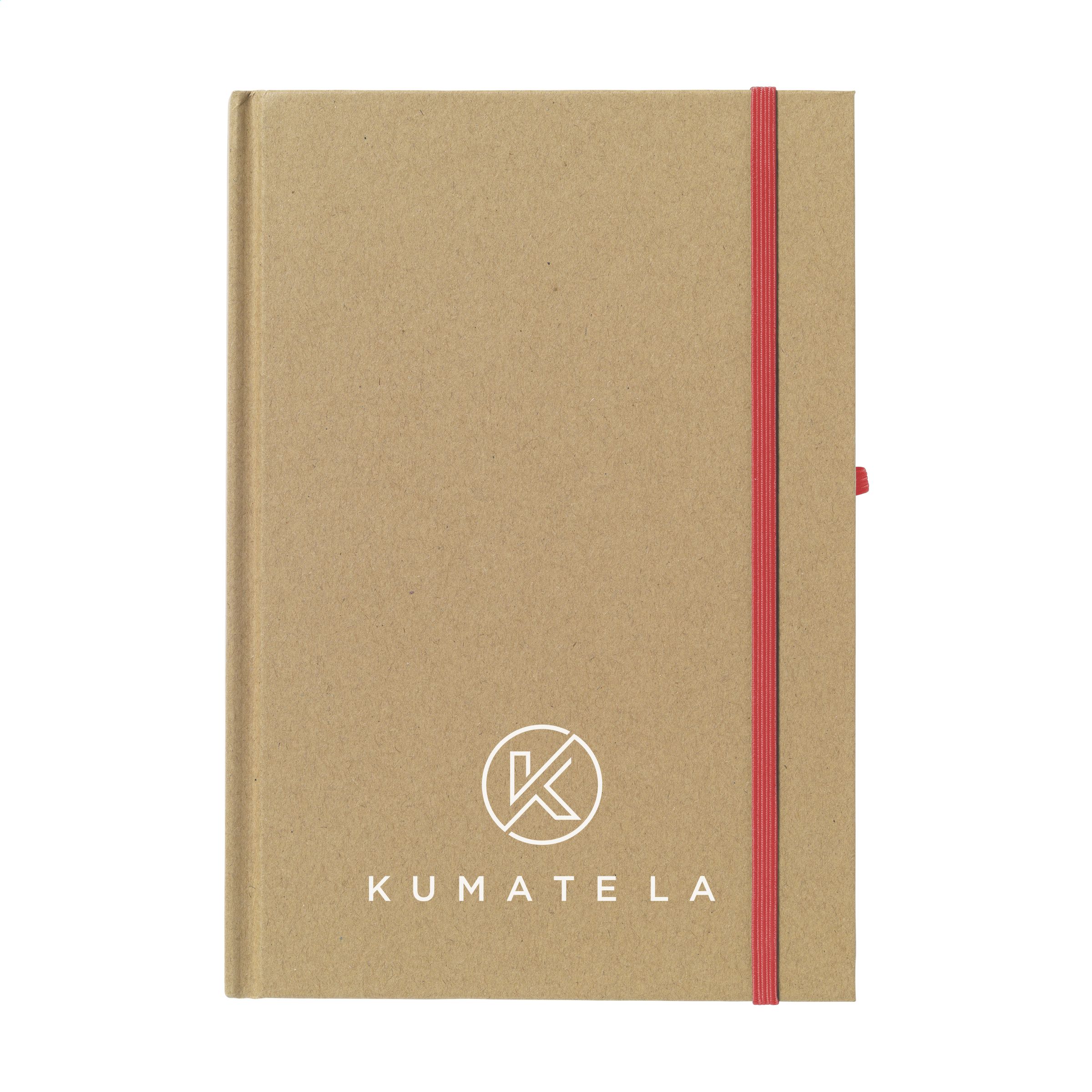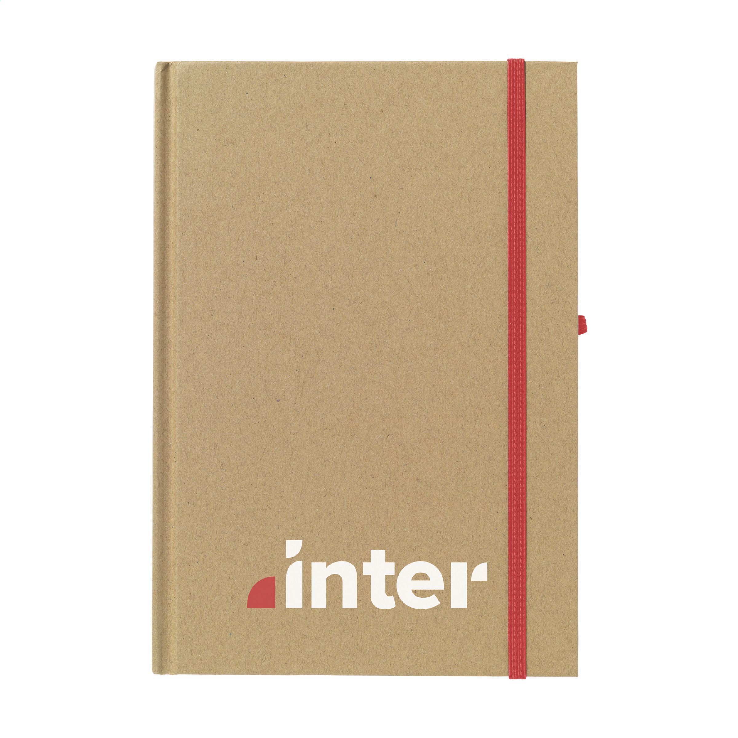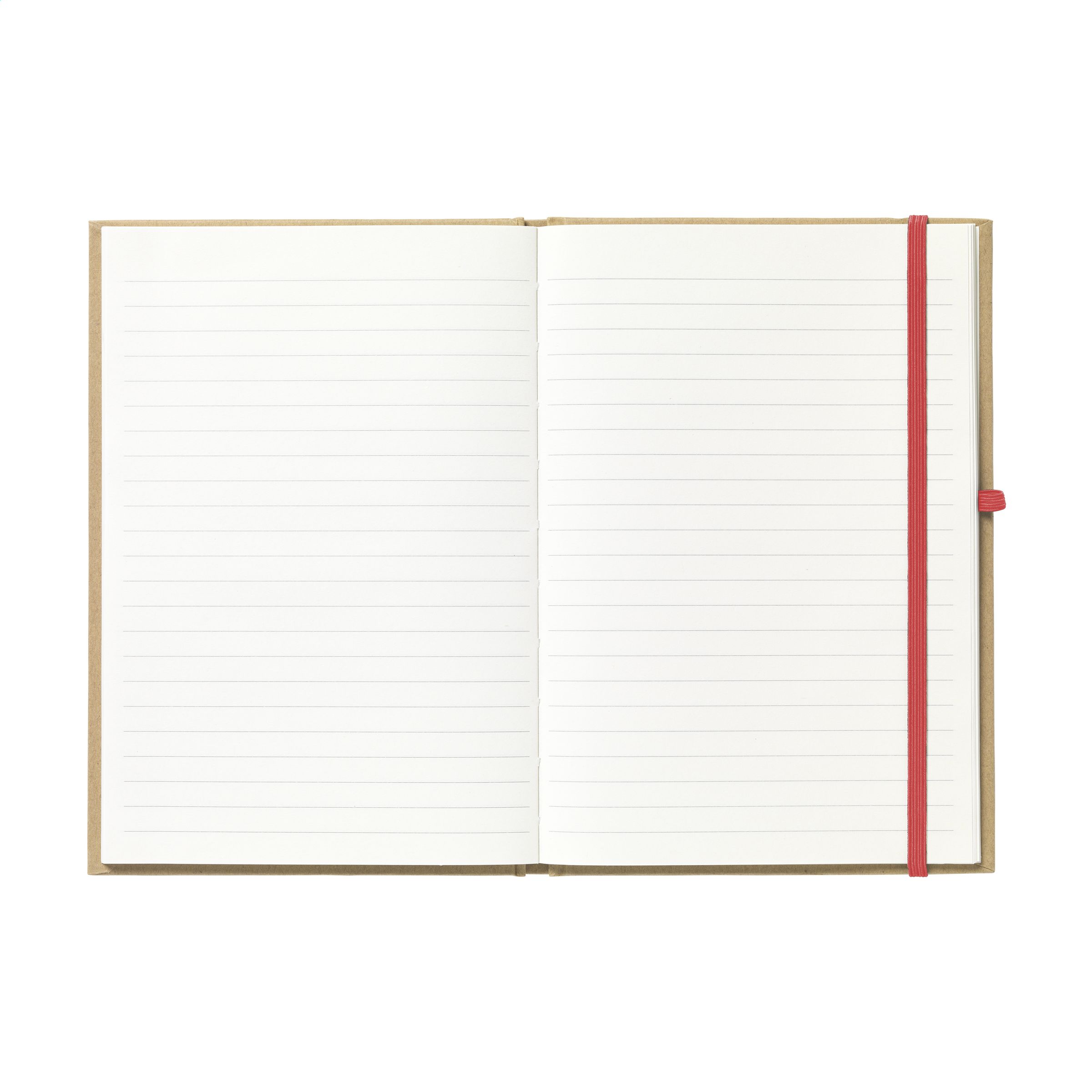 Notizbuch im A5-Format aus recyceltem Material. Mit ca. 80 Blatt/160 Seiten cremefarbenem, liniertem Papier (70 g / m²), praktischem Stiftfach und elastischem Verschluss.