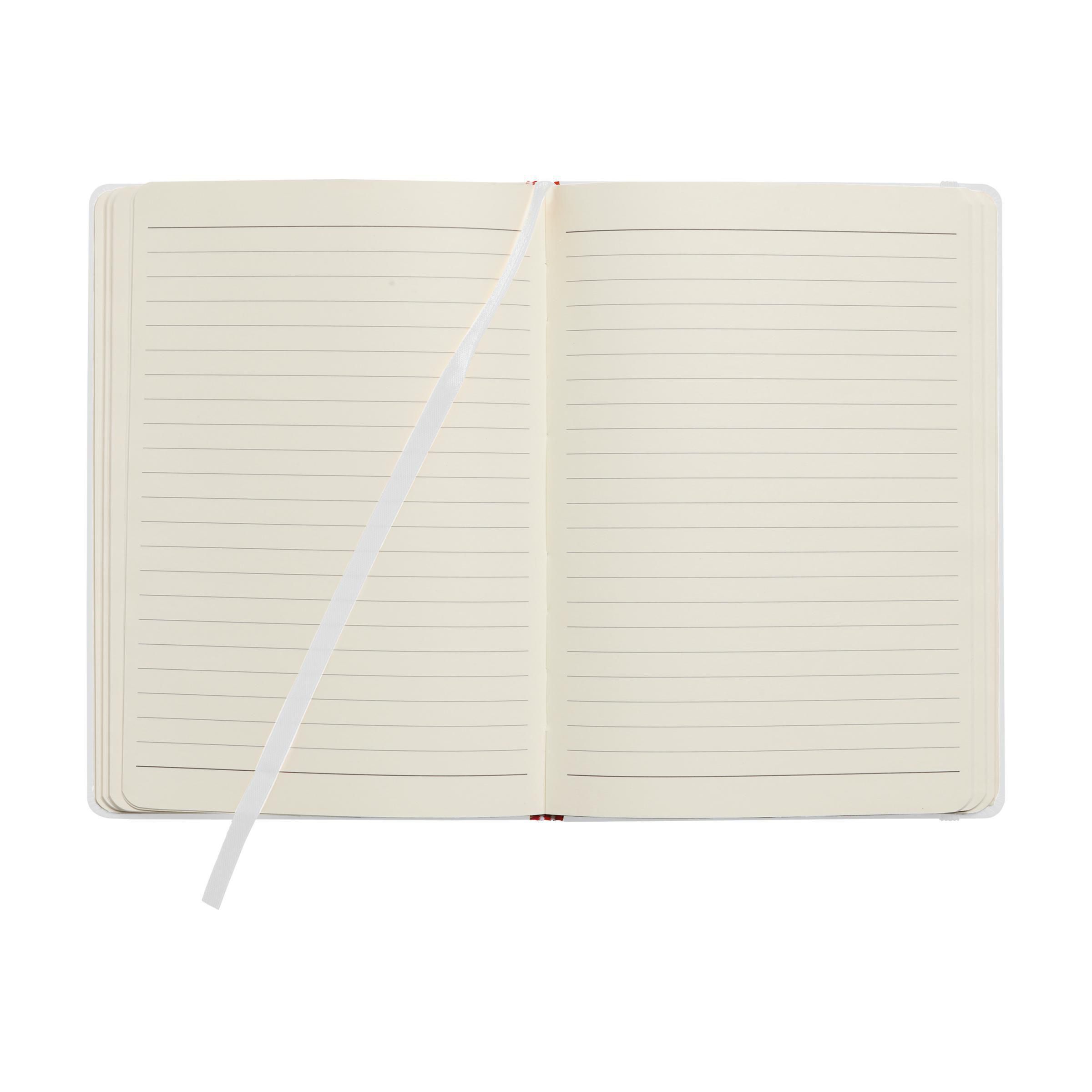 Notizbuch im A4-Format mit ca. 96 Blatt/192 Seiten cremefarbenes, liniertem FSC Mix zertifiziertes Papier (80 g/m²). Mit gebundenem Rücken und hartem Umschlag, elastischem Band und seidener Leselitze.