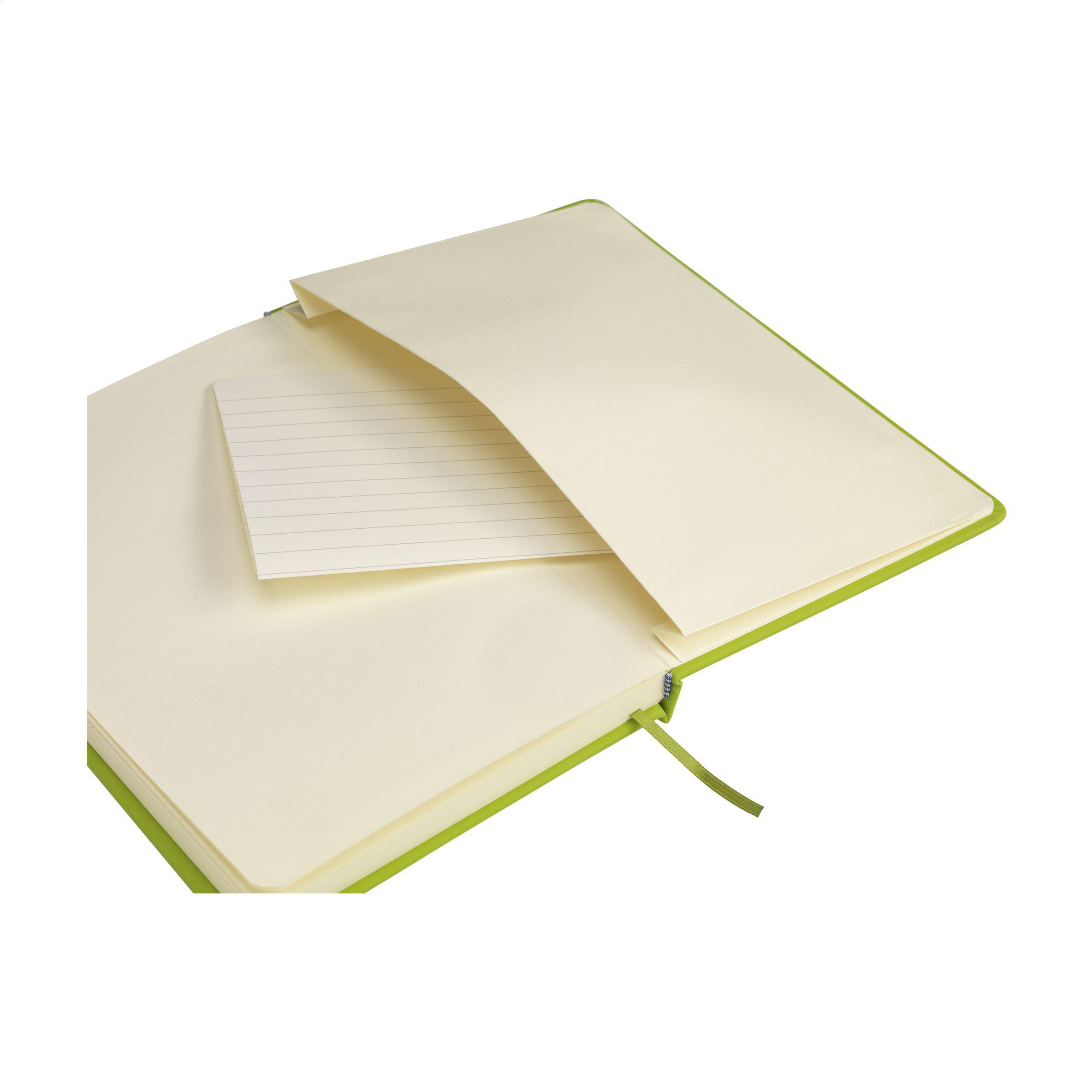 Notizbuch im A5-Format mit ca. 96 Blatt/192 Seiten crèmefarbenem, liniertem FSC Mix zertifiziertes Papier (80 g/m²). Mit gebundenem Rücken und hartem Umschlag, Verschlussgummi und seidener Leselitze.