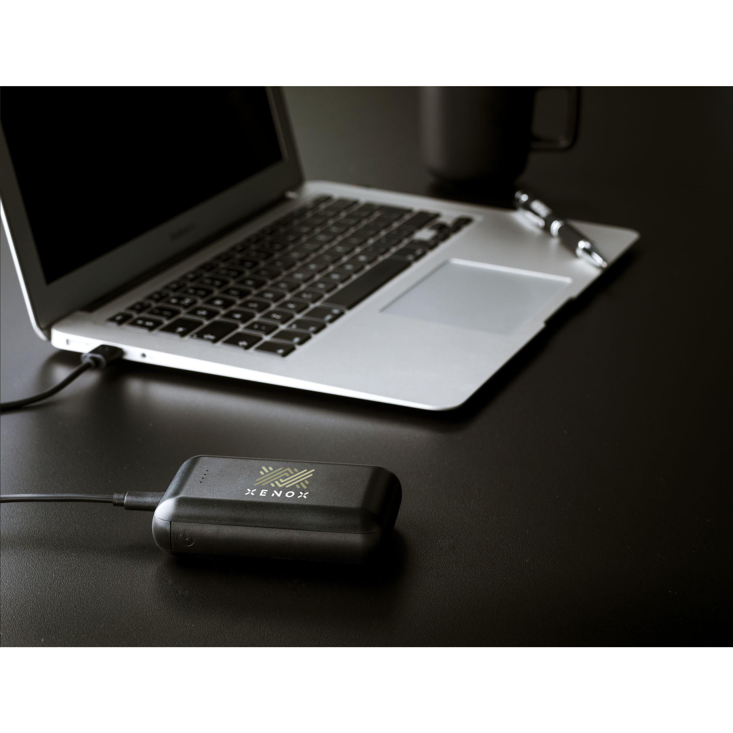 Kleine, leichte und sehr leistungsstarke kabellose Lade-Powerbank (5 W) aus recyceltem ABS mit eingebautem Lithium-Polymer-Akku (10.000 mAh). Dieses Kraftpaket passt mühelos in Ihre Hosentasche, sodass Sie es bequem überallhin mitnehmen können. Trotz der geringen Größe haben Sie ausreichend Strom dabei, um Ihr Telefon mehrfach über die 2 USB-Anschlüsse oder die integrierte 5-Watt-Wireless-Charging-Funktion aufzuladen (unterstützt das kabellose Aufladen von Mobilgeräten, die QI Wireless Charging unterstützen). Eingang 5 V/2 A. 2x Ausgang: 5 V/2 A. Drahtlose Leistung: 5 W. Mit Anzeigeleuchten und Ein-/Aus-Taste. Inklusive Ladekabel USB-C zu USB-C und Gebrauchsanweisung.