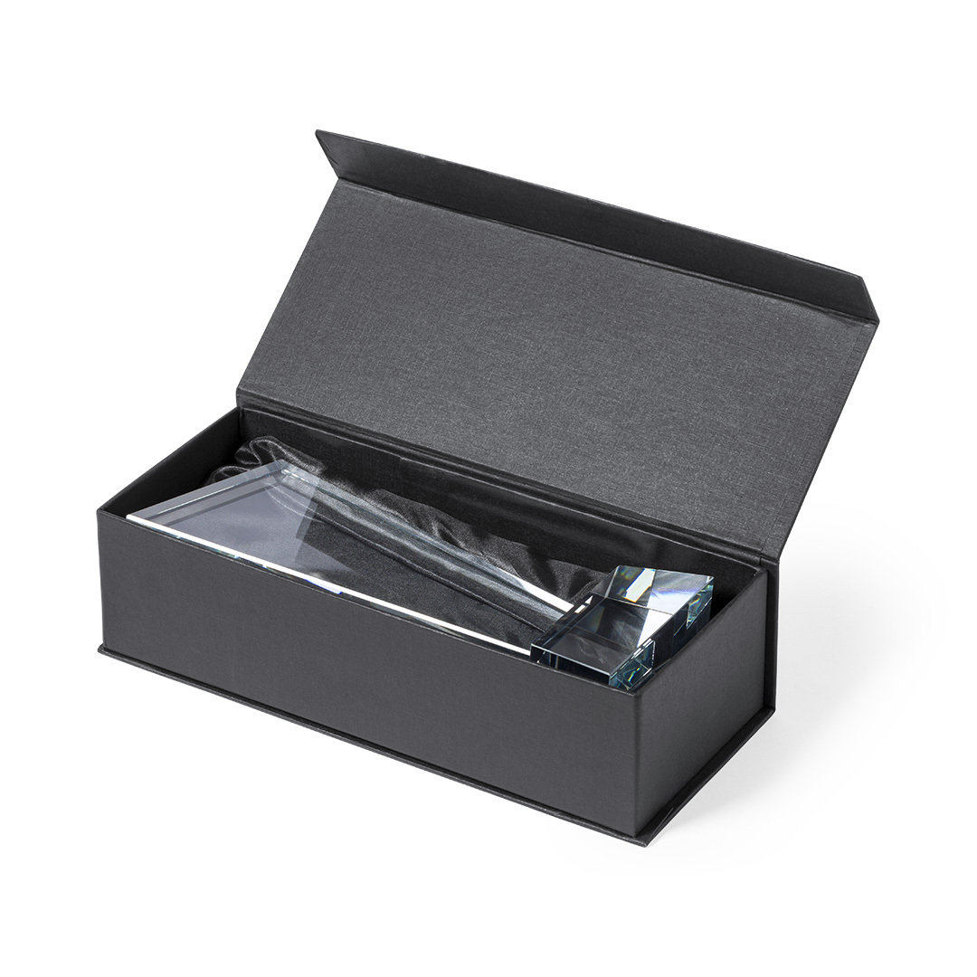 Trophäe aus dickem Glas mit exklusivem Design und widerstandsfähigem Sockel. Speziell für die Lasergravur entworfen und in einer Schutzhülle aus strapazierfähigem Karton mit Magnetverschluss und gestanztem Schaumstoff-Innenleben präsentiert.