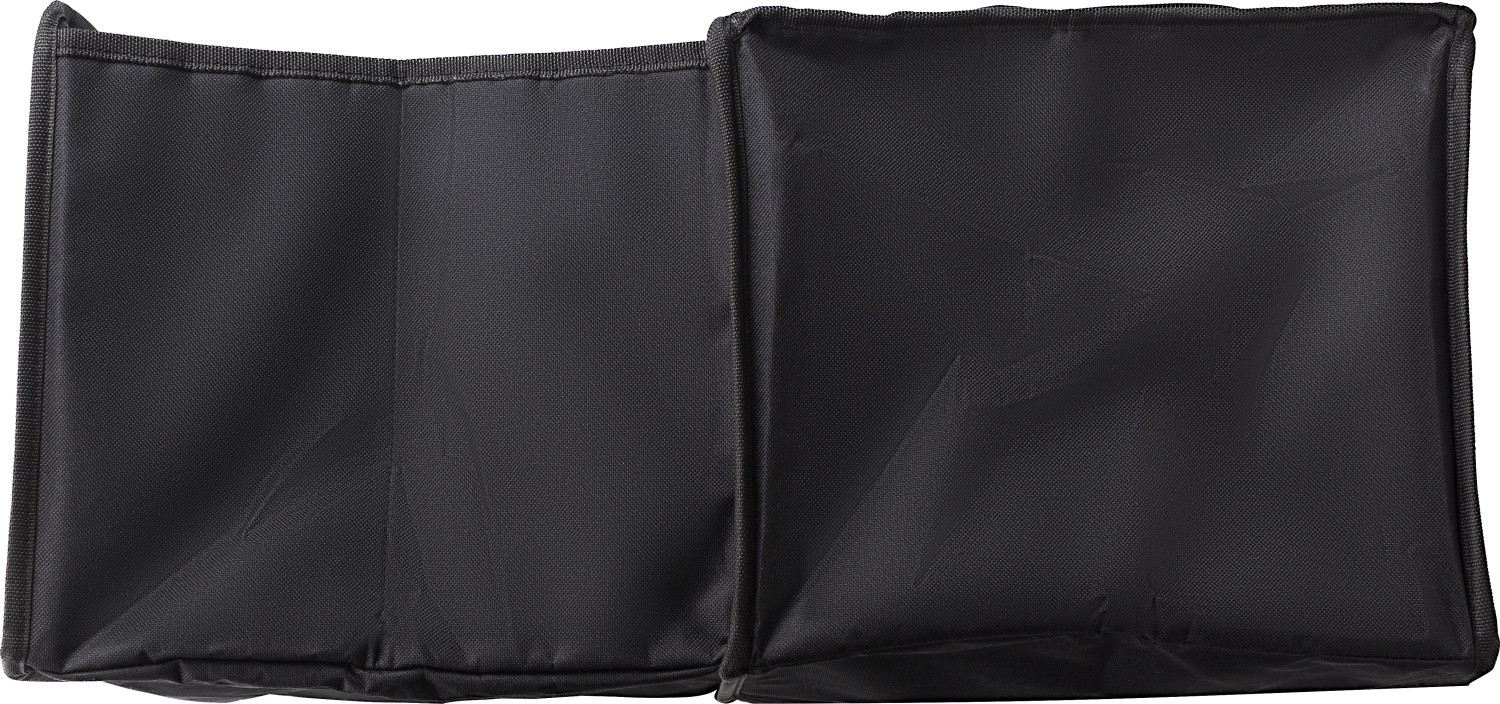 Autotasche aus Polyester (600D). Zwei Fächer, eine Kühltasche mit Reißverschluss geschlossen. Aluminium innen auf der Seite der Kühltasche. Zusammenklappbar.