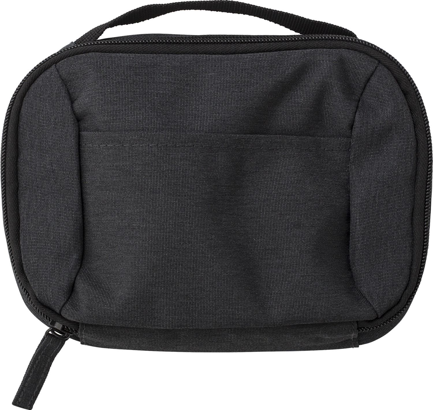 Reisetasche aus Polyester (600D) mit kurzer Trageschlaufe. Ein Fach mit mehreren Taschen für Kabel und Reisedokumente. Eine kleine Tasche auf der Vorderseite.
