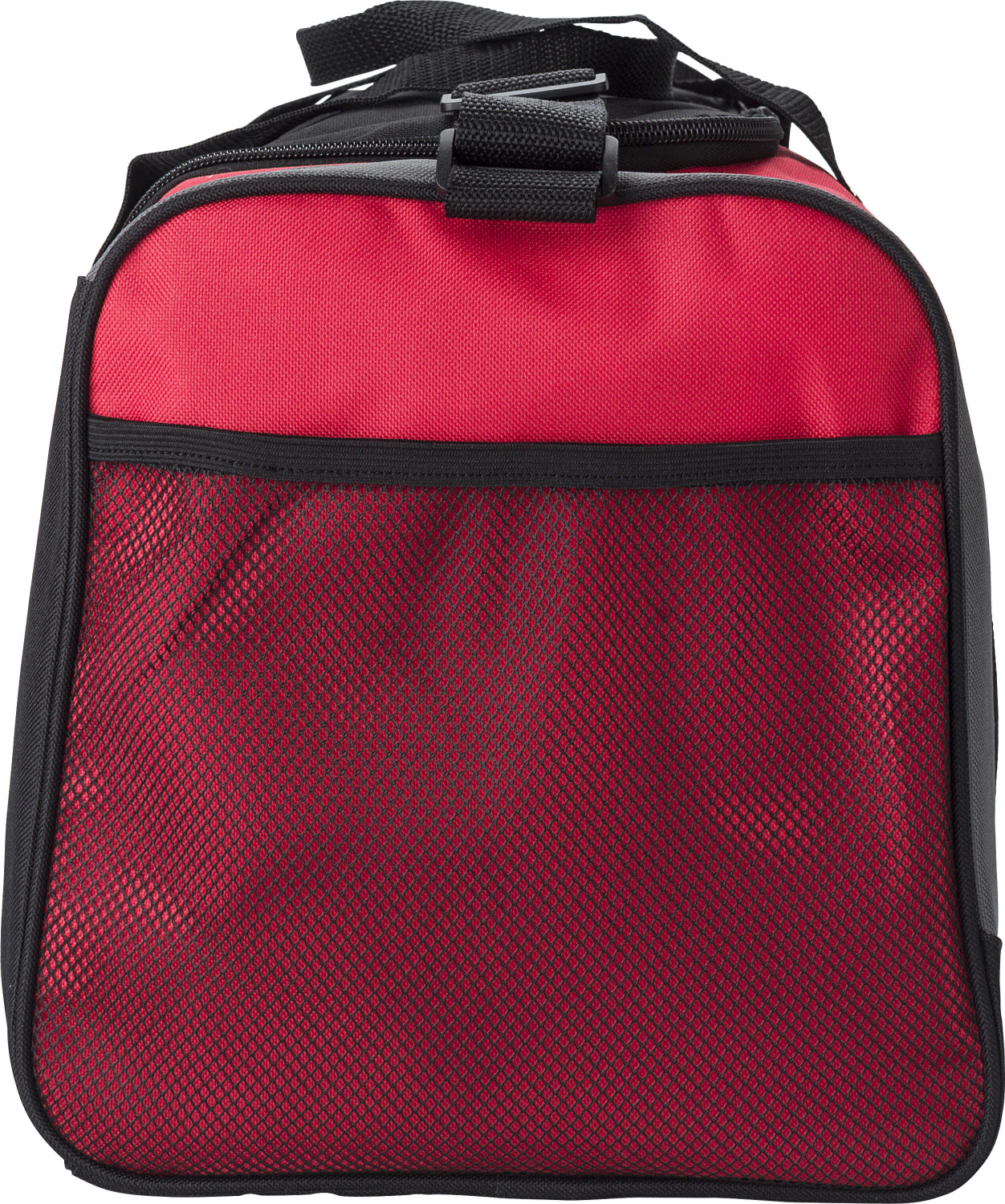 Seesack aus Polyester (600D) mit kurzen Griffen und verstellbarem Gurt. Ein großes Fach mit Reißverschluss, eine Netztasche an der Seite, 3 Fronttaschen. Verstärkter Boden.