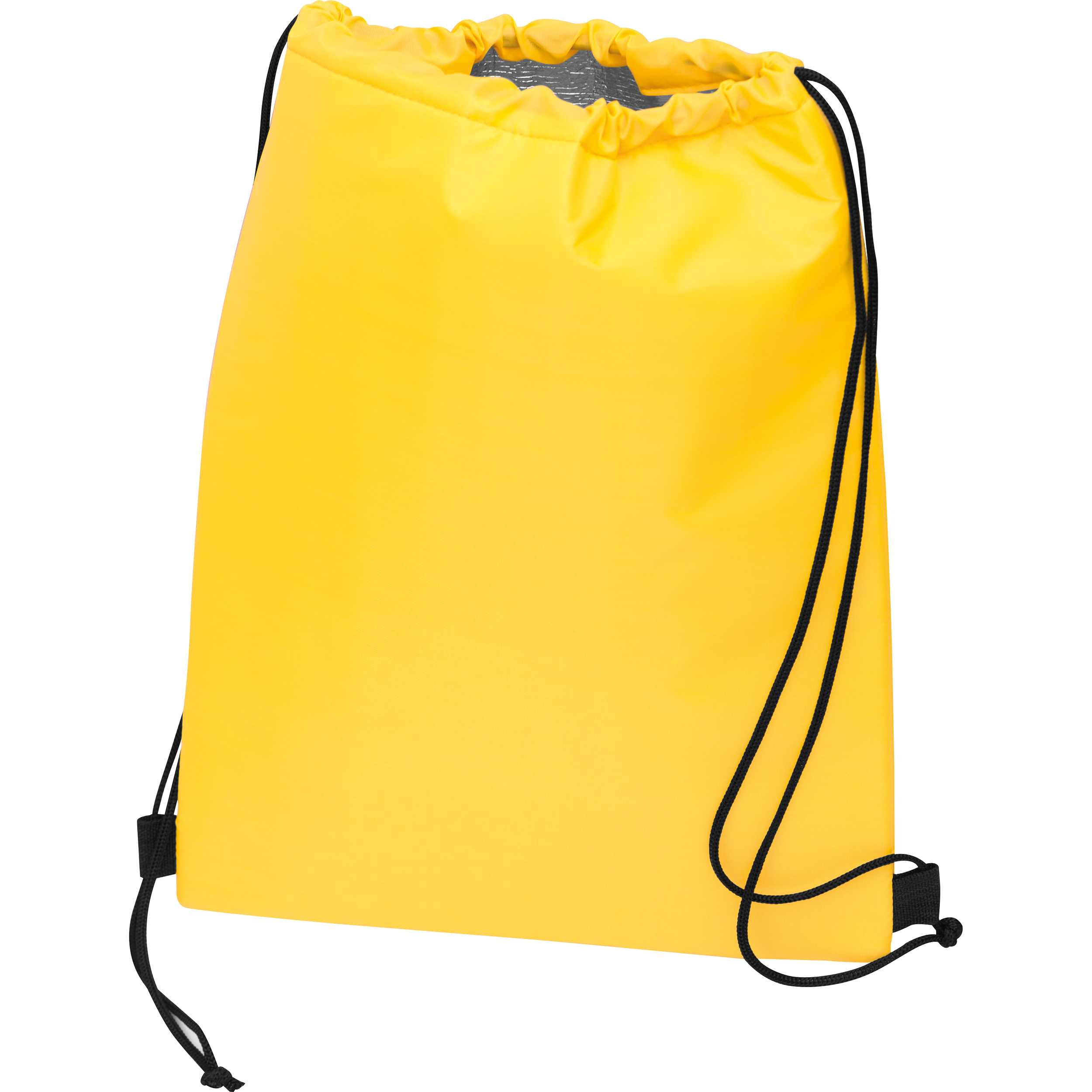 Kühltaschen-Gymbag aus 210D Polyester mit isolierendem Innenfutter und Kordelzug, der auch als Trageriemen dient. Der Werbeaufdruck erfolgt auf einer Seite.