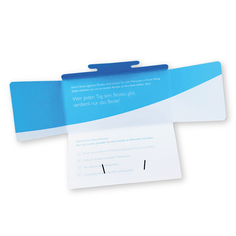 Ideal für Ihr Effekt-Mailing. Der 3D-Pop-Up-Cube wird flachliegend in eine Kartohülle konfektioniert. Durch innenliegende Gummibänder ist das Entfalten des Würfels zum Zeitpunkt des Öffnens des Mailings vorbereitet. Öffnet der Empfänger das Mailing öffnet sich der Pop-Up Cube ruckartig und wird zum 3D-Würfel. Alle sechs Seiten des 3D-Pop-up-Mailingwürfels sind frei gestaltbar und bieten, im Gegensatz zu einer flachen Grußkarte, eine riesige Druck- und somit Werbefläche. Ideal für Ihr Werbe-Mailing.