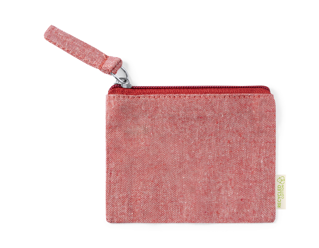 Portemonnaie aus recycelter Baumwolle. Hauptfach mit Reißverschluss und passendem Puller. Außenetikett mit dem Erkennungsmerkmal der recycelten Baumwolle und in einer breiten Farbpalette erhältlich. GRS-Zertifizierung (Global Recycled Standard) verfügbar, die die recycelte Herkunft des für die Herstellung des Produkts verwendeten Materials garantiert.