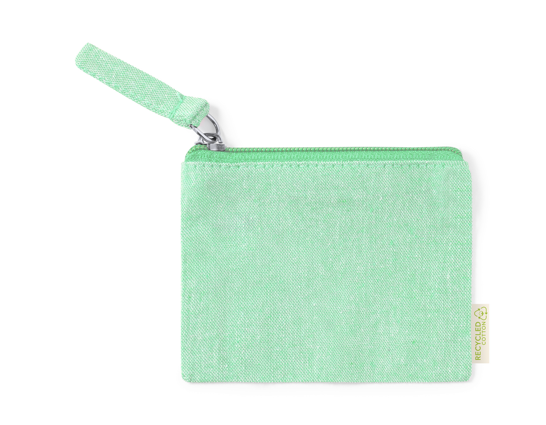 Portemonnaie aus recycelter Baumwolle. Hauptfach mit Reißverschluss und passendem Puller. Außenetikett mit dem Erkennungsmerkmal der recycelten Baumwolle und in einer breiten Farbpalette erhältlich. GRS-Zertifizierung (Global Recycled Standard) verfügbar, die die recycelte Herkunft des für die Herstellung des Produkts verwendeten Materials garantiert.