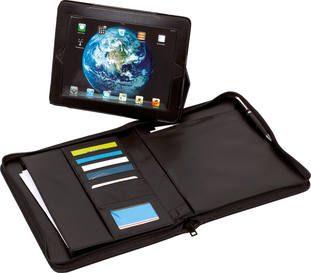 Portfolio NEW AGE: mit herausnehmbarer Schutzhülle für Tablet und iPad® im Format ca. 24 x 17,7 cm, mit Platz für 5 Visitenkarten und Schreibblock, 1 Klarsichtfach, 1 großes Steckfach, Schlaufe für ein Schreibgerät, mit umlaufendem Reißverschluss